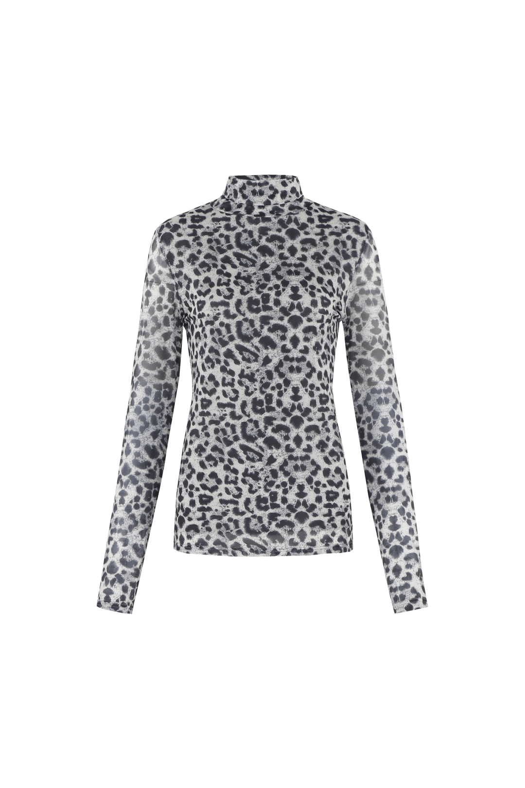 Chiffon shirt van G-maxx in een animal dessin met lange transparante mouwen en een turtleneck. Materiaal: Polyester 100%