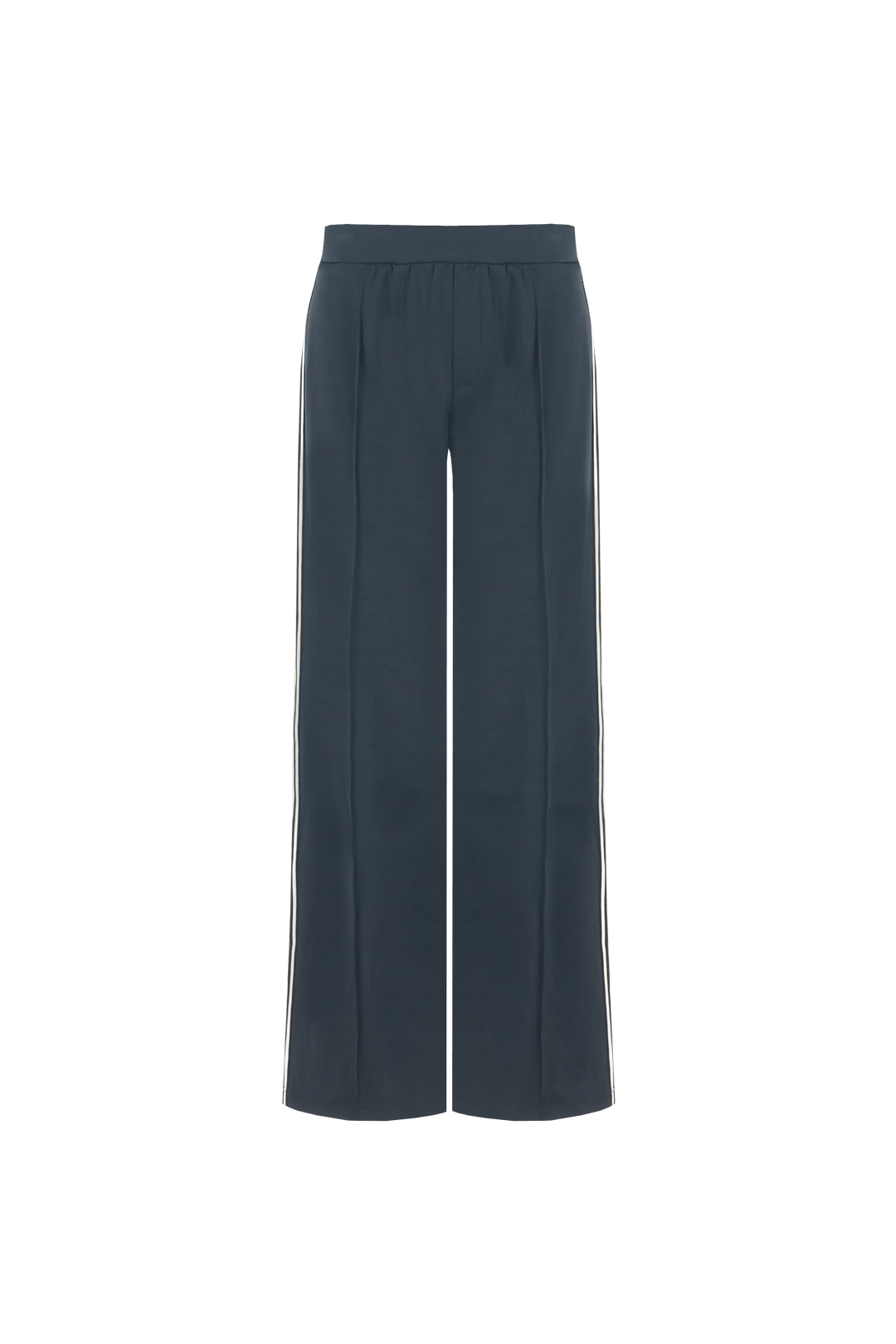 Broek van G-maxx met wijde pijpen voorzien van gestreepte bies aan de zijnaden, gestikte vouwnaden, elastische tailleband, steekzakken en paspelzakken aan de achterzijde.