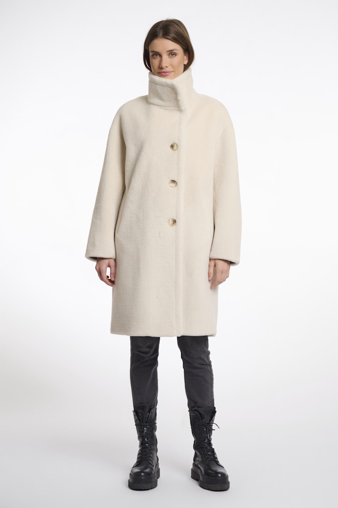 Faux fur coat van Rino & Pelle met een knoopsluiting, hoge kraag en steekzakken. Materiaal: Polyester 98%| elastan 2%