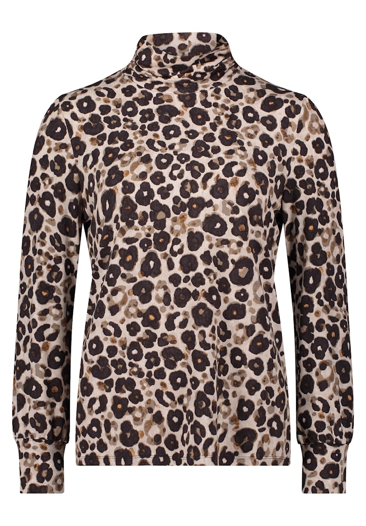 Shirt van Betty Barclay in een animal dessin met lange mouwen en een opstaande kraag. Materiaal: Viscose 95%| elastomeer 5%