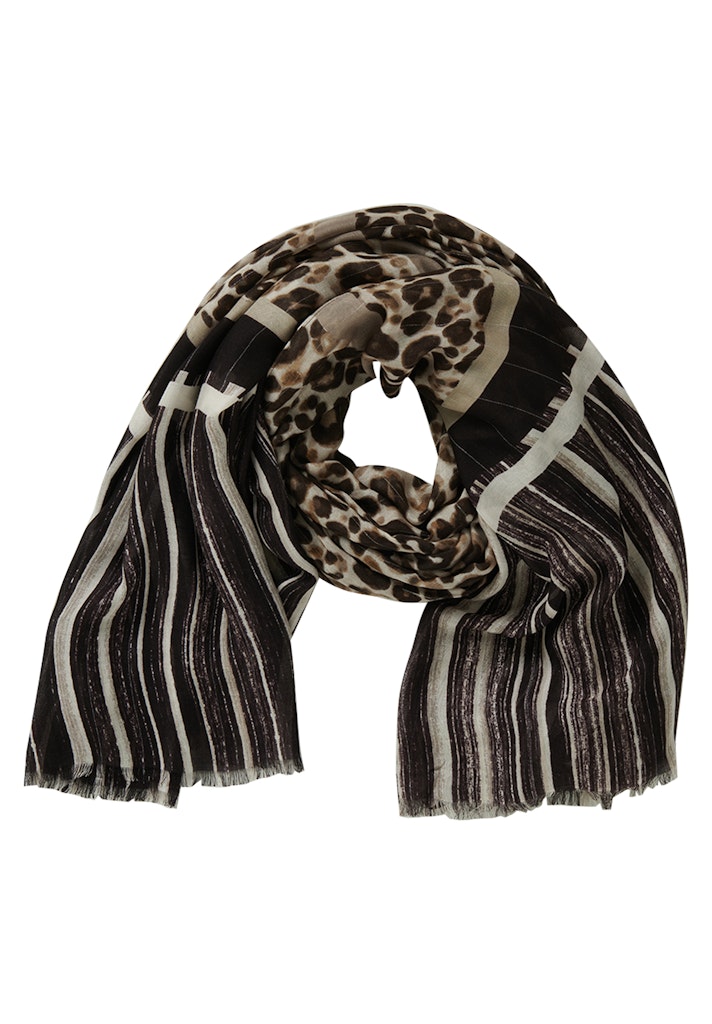 Lange sjaal van Betty Barclay in een all-over dessin voorzien van glitters met gerafelde uiteinden. Afmetingen: 180 x 100 cm.
