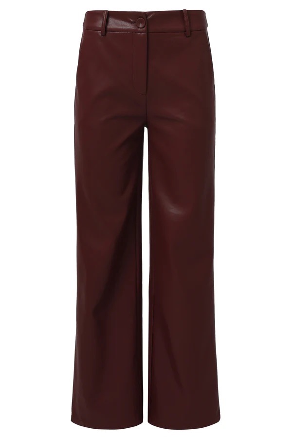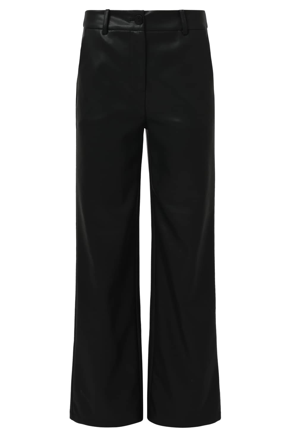 Imitatie leren broek van Smashed Lemon met wijde pijpen, verborgen knoop- en ritssluiting, steekzakken en twee paspelzakken aan de achterzijde.