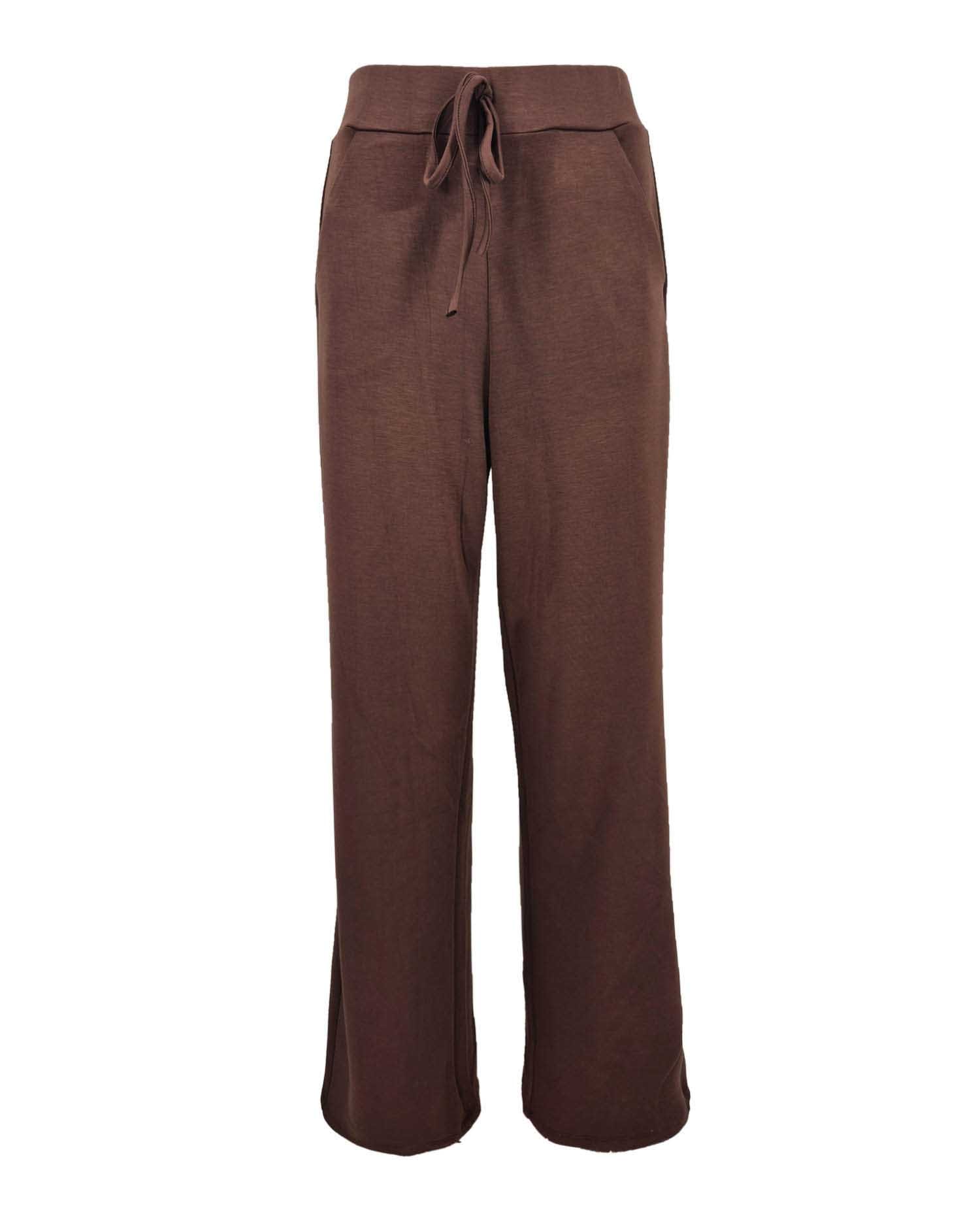 Broek van Fos Amsterdam met wijde pijpen, steekzakken, een paspelzak aan de achterzijde en een elastische tailleband vorzien van trekkoord.