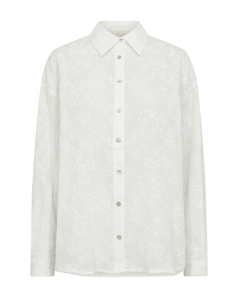 Blouse van Freequent in een geborduurd patroon met lange mouwen, kraag en een knoopsluiting. Materiaal: Katoen 100%