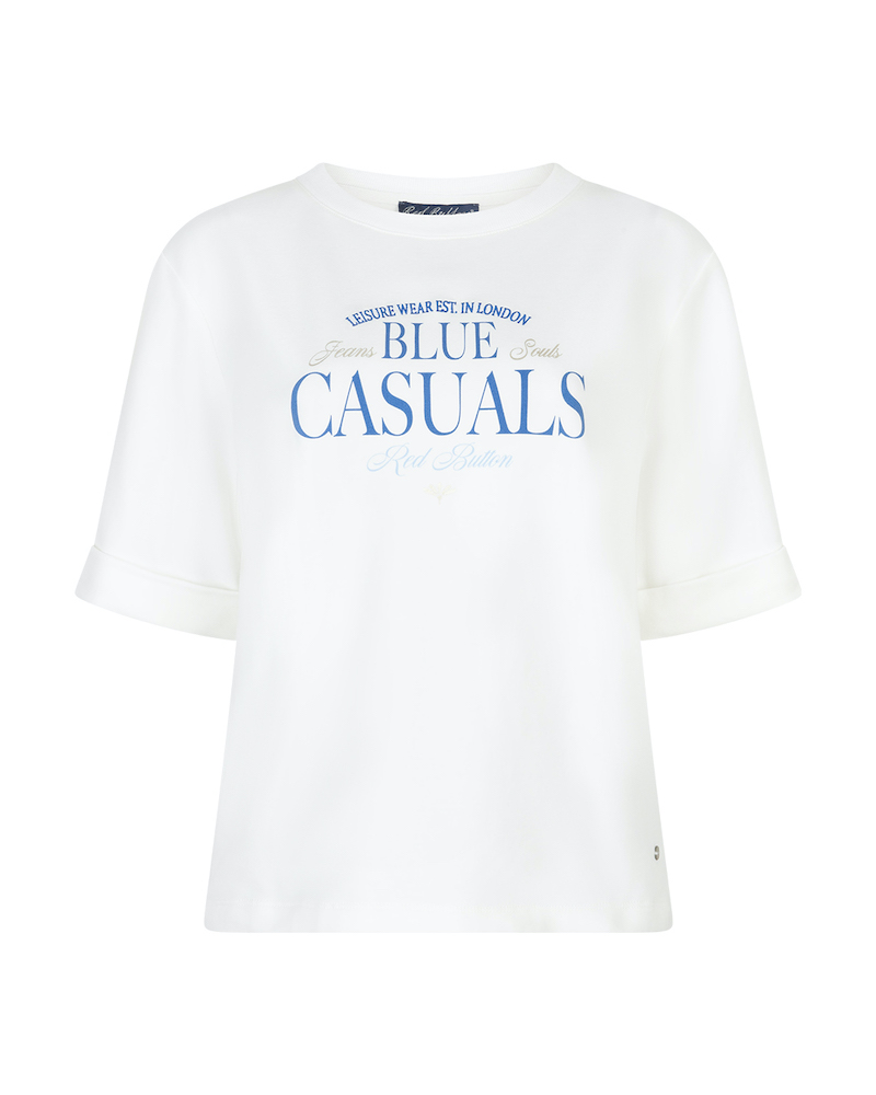 Shirt van Red Button met korte mouwen voorzien van omslag, ronde hals en een tekstprint op de borst. Materiaal: Katoen 96%| elastan 4%