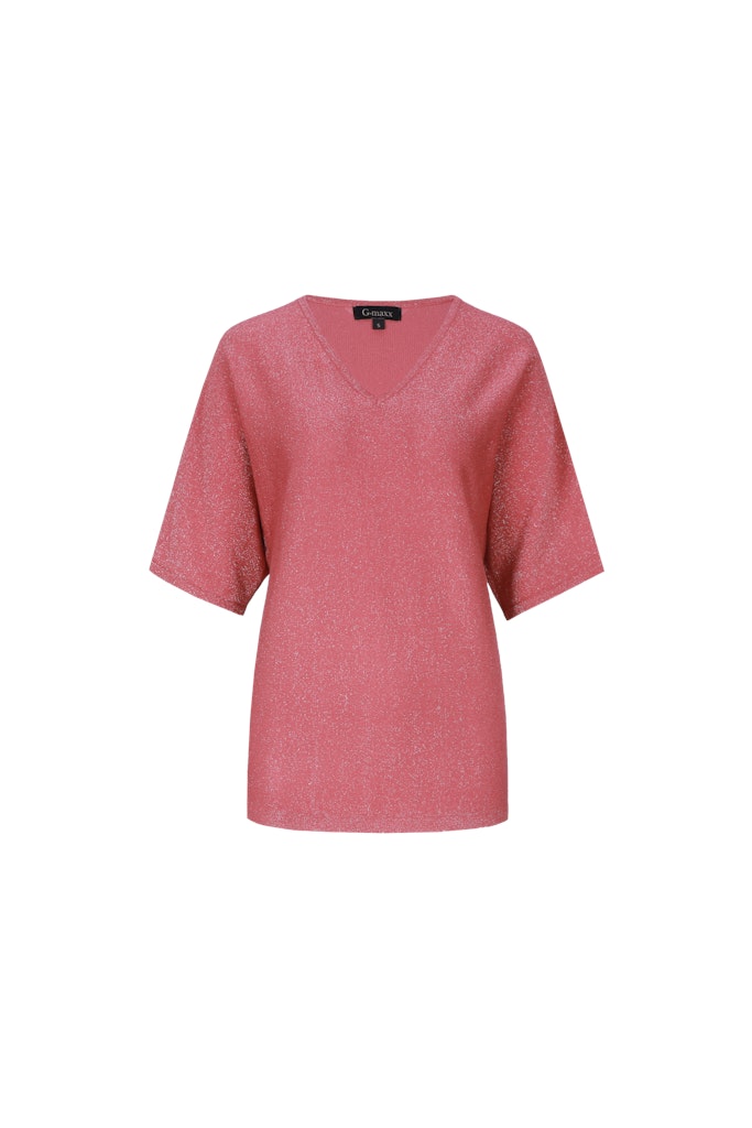 Soepelvallende top van G-maxx met een subtiele glitter erin verwerkt, halflange mouwen en V-hals. Materiaal: Viscose 80%| elastan 20%