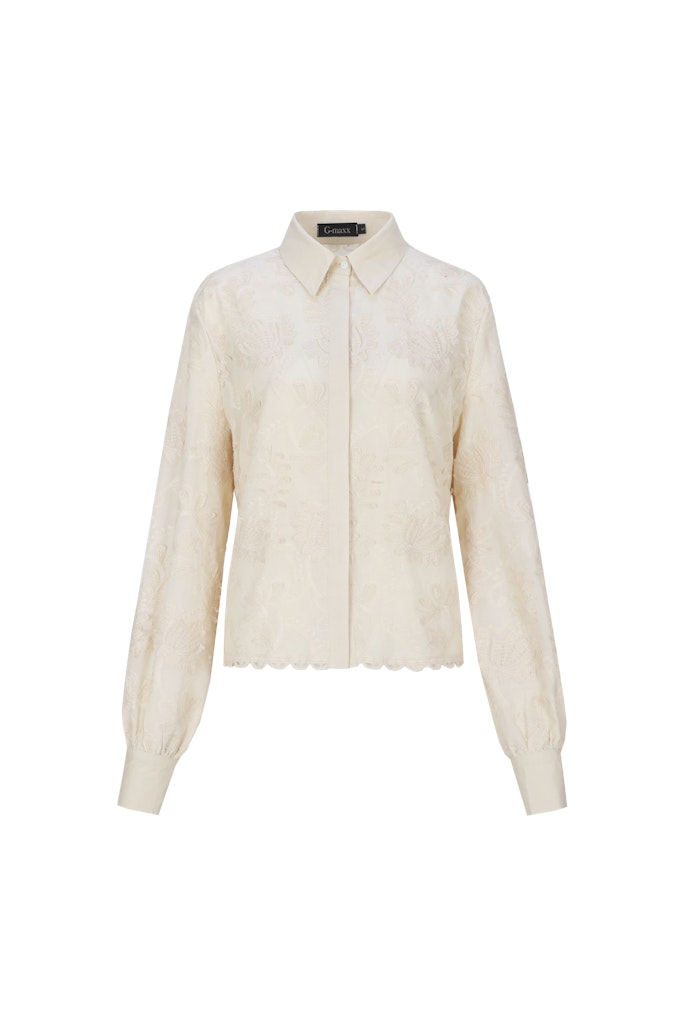 Blouse van Gmaxx met borduursels, lange mouwen, klassieke kraag en verborgen knoopsluiting. Materiaal: Katoen 100%