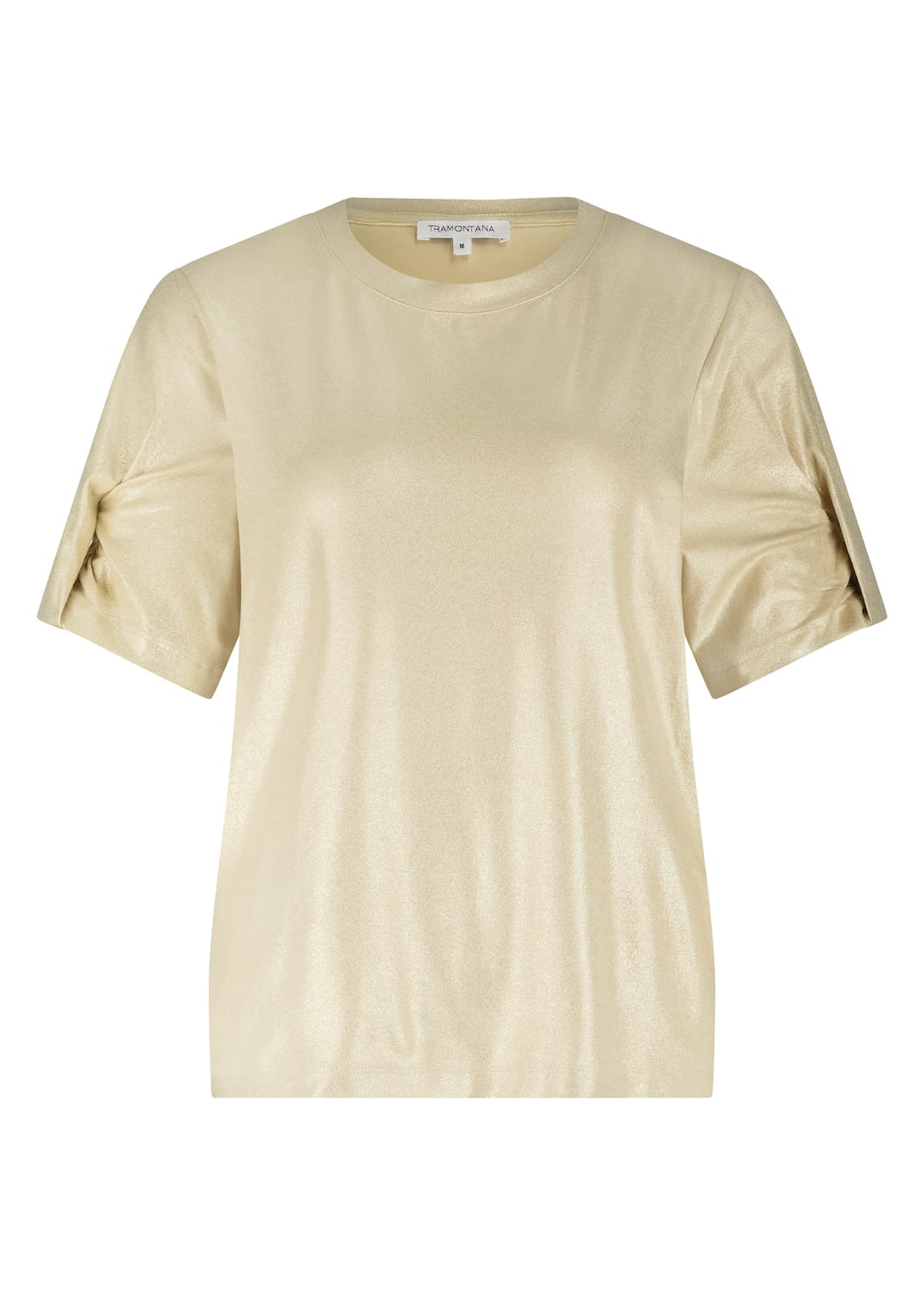 Coated shirt van Tramontana met een ronde hals en korte mouwen voorzien van omslagdetail. Materiaal: Viscose 95%| elastan 5%