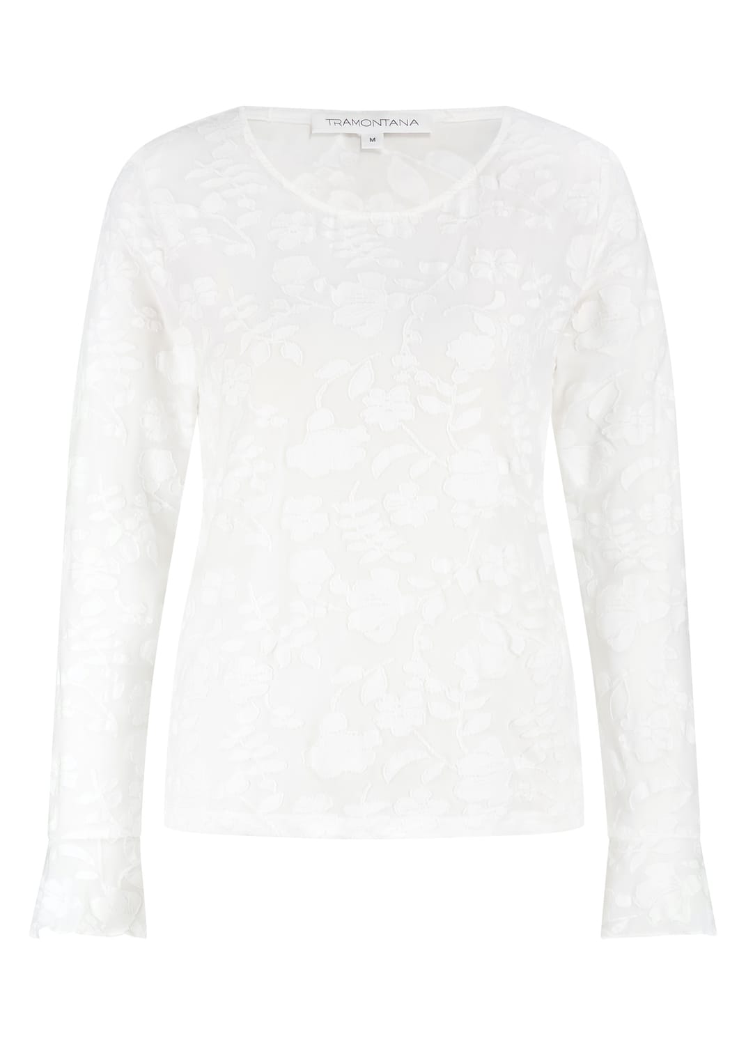 Ausbenner top van Tramontana in een subtiel bloemen dessin met lange trompetmouwen en een ronde hals. Materiaaal: Polyester 95%| elastan 5%