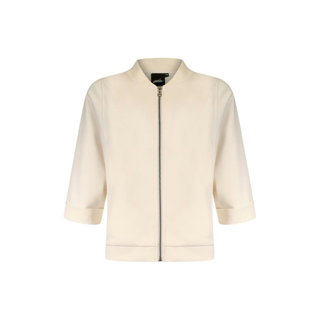 Bomberjacket van Poools met een ritssluiting en driekwart mouwen voorzien van omslag.