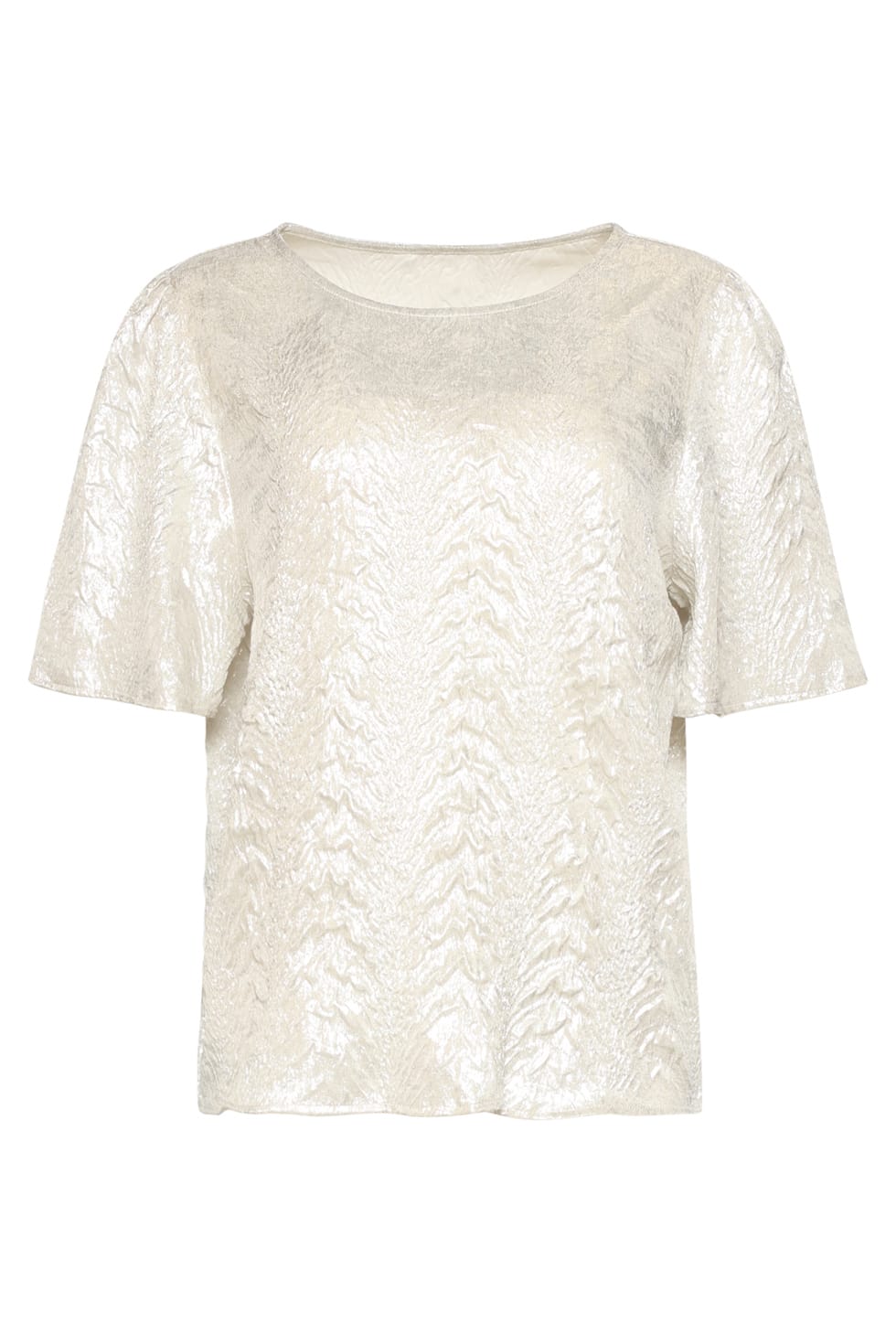 Glanzend shirt van Smashed Lemon in een structuur dessin met korte wijde mouwen voorzien van lichte pof aan de schouders en een ronde hals.