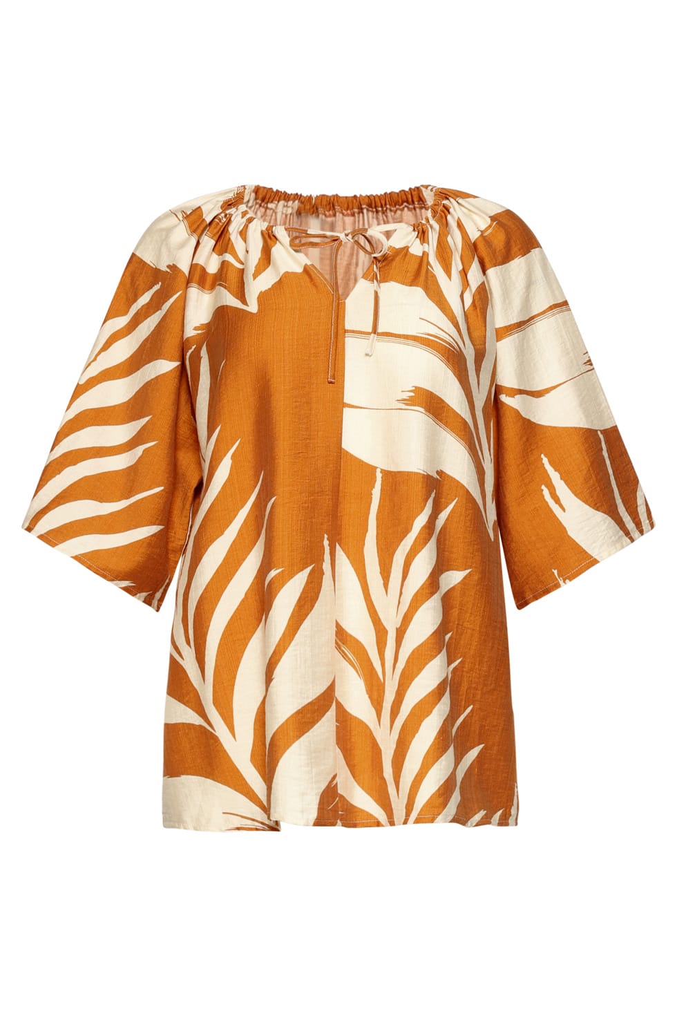 Blouse van Smashed Lemon in een bladeren dessin met halflange raglanmouwen en een ronde hals voorzien van plooien, split en een striksluiting.
