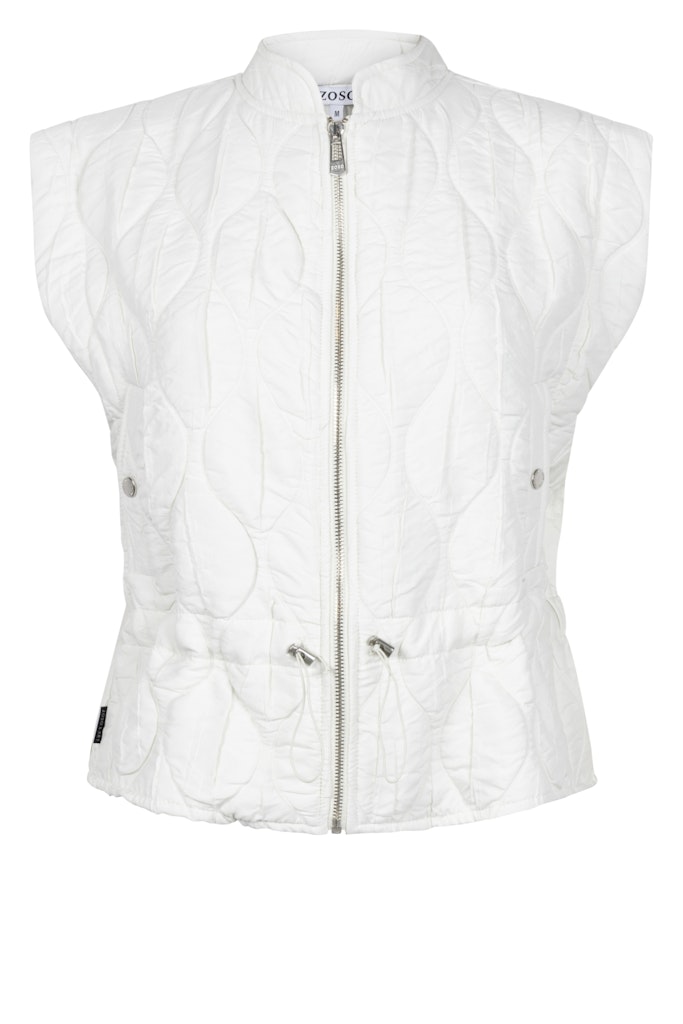 Doorgestikte gilet van Zoso met een ritssluiting, korte aangeknipte mouwen, opstaande kraag, steekzakken en een drawstring in de taille.