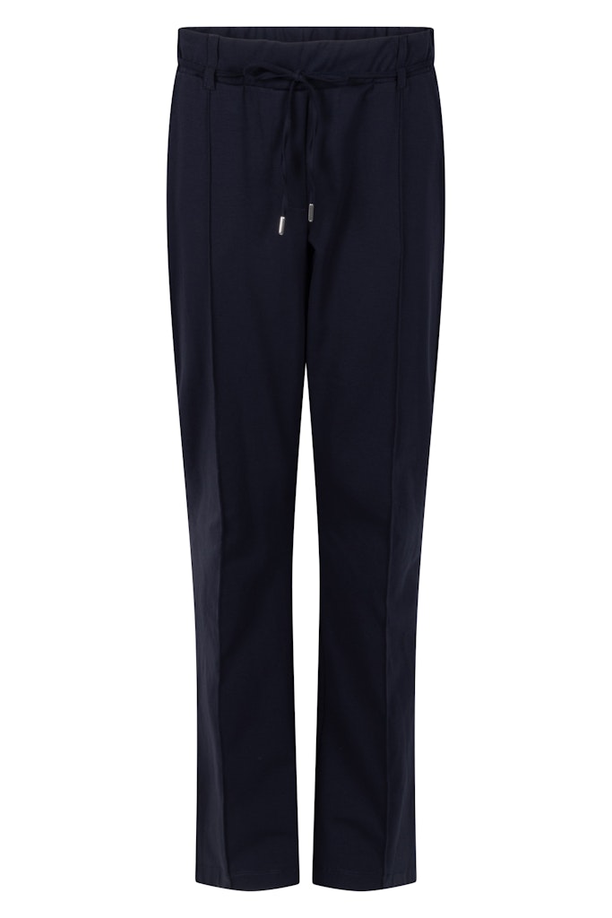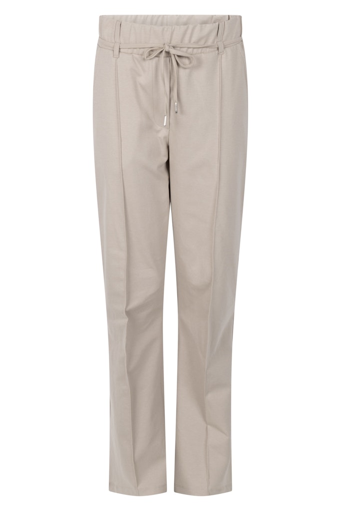 Broek van Zoso met rechte pijpen, steekzakken, doorgestikte naad aan de voorzijde en een elastische taileband voorzien van trekkoord.