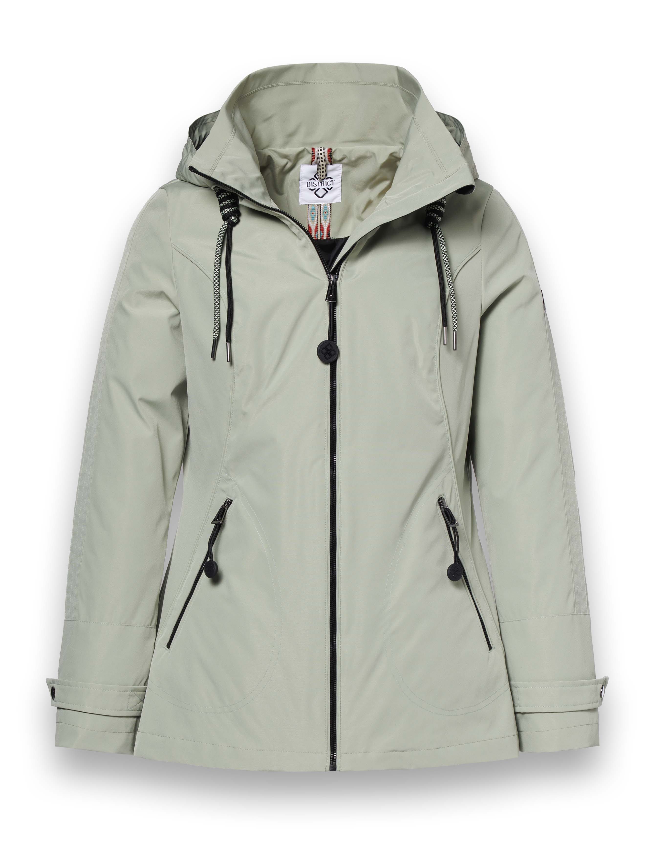 Getailleerd jack van District met een ritssluiting, opstaande kraag, afneembare capuchon voorzien van trekkoord, verstelbare manchetten en twee ritszakken.