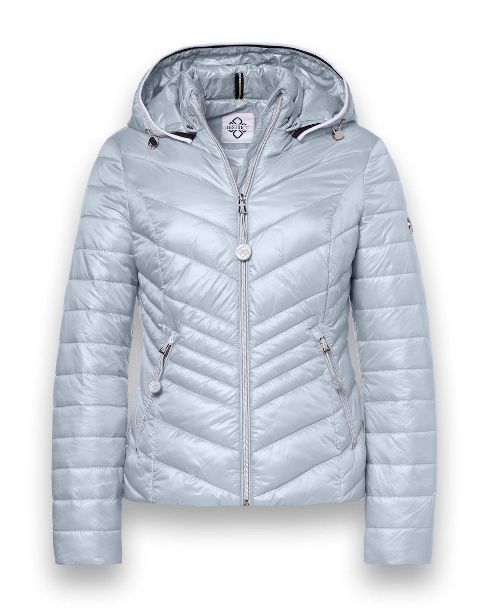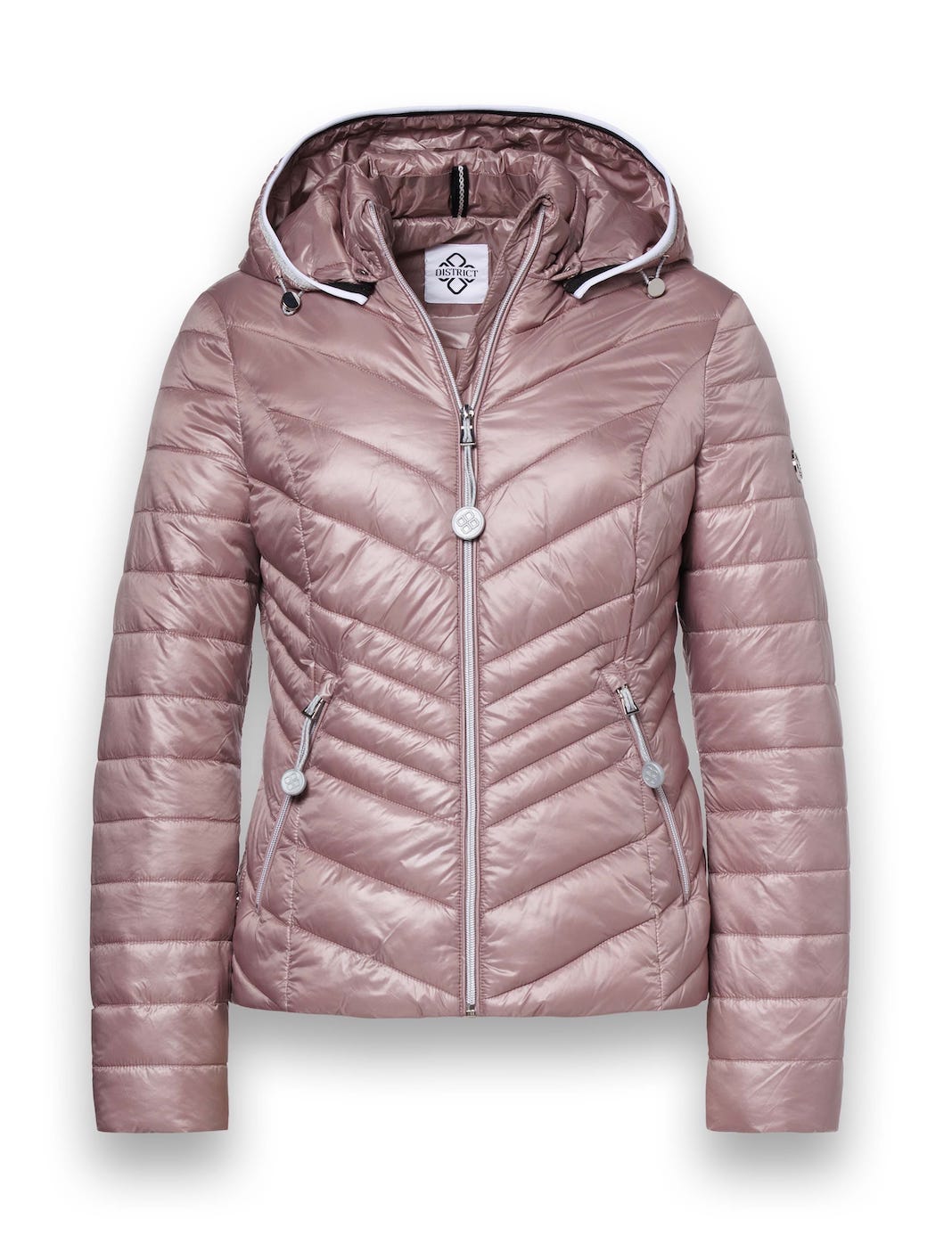 Gewatteerd, getailleerd jack van District met een ritssluiting, opstaande kraag, afneembare capuchon voorzien van drawstring en twee ritszakken. Materiaal: Polyamide 100%