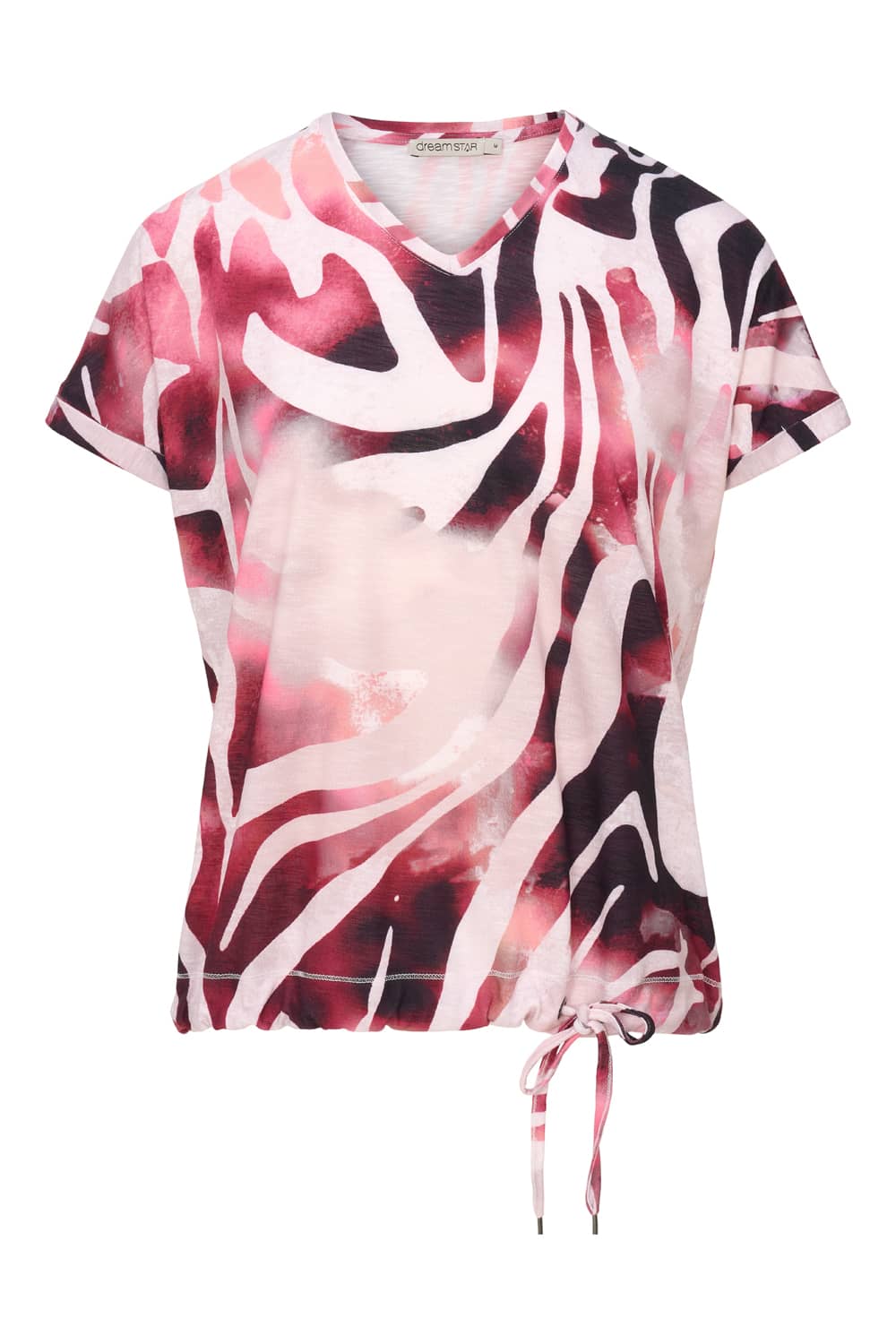 Top van Dreamstar in een all-over dessin met korte mouwen, V-hals en trekkoord in de tailleband. Materiaal: Katoen 50%| modal 50%