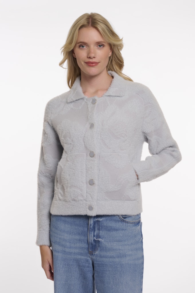 Vest van Rino & Pelle in een animal dessin met lange mouwen voorzien van contrasterende bies, knoopsluiting, kraag en ribgebreide boorden.