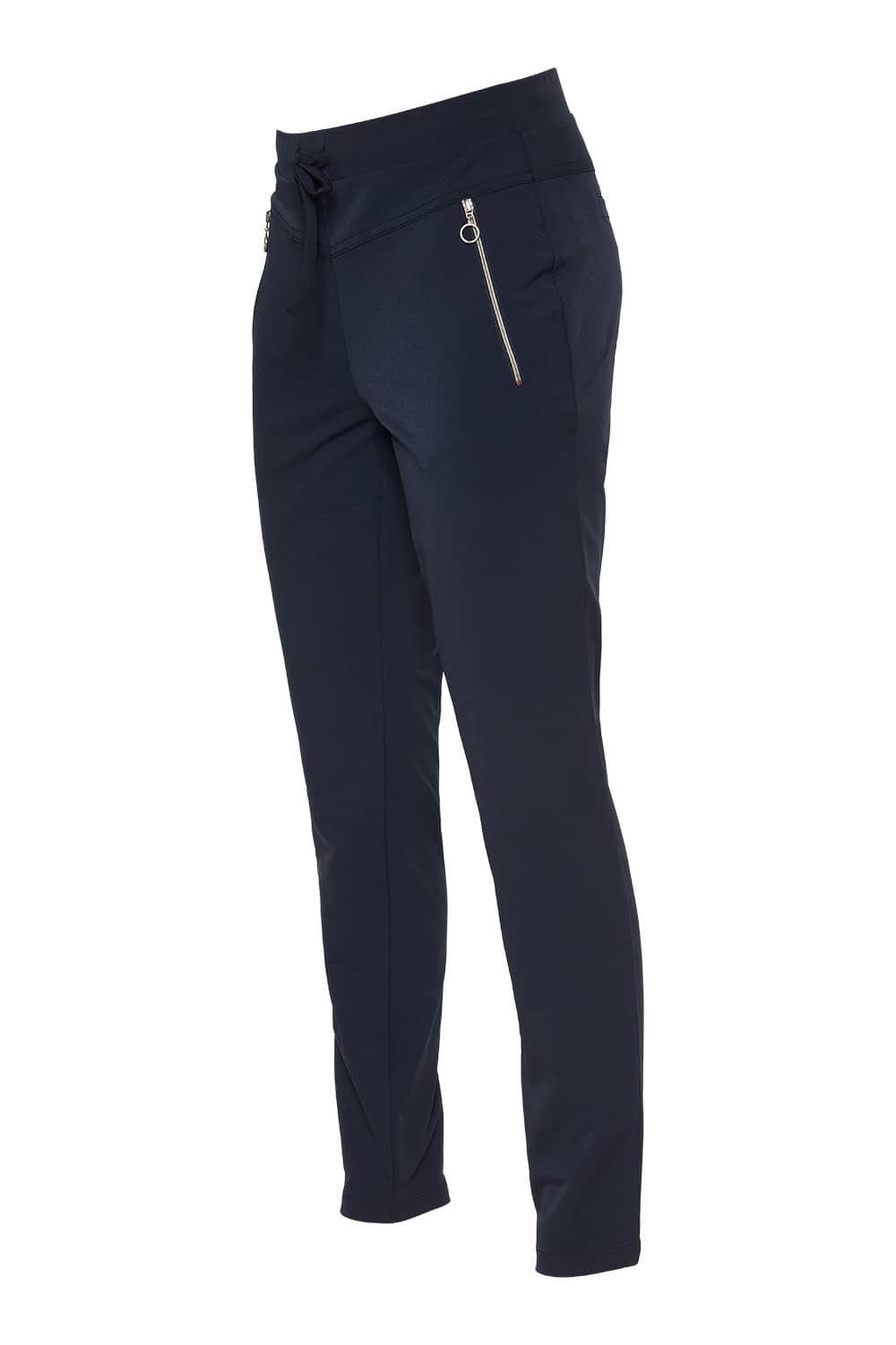 Broek van Dreamstar in travel kwaliteit met een elastische tailleband voorzien van trekkoord, ritszakken en paspelzakken aan de achterzijde.