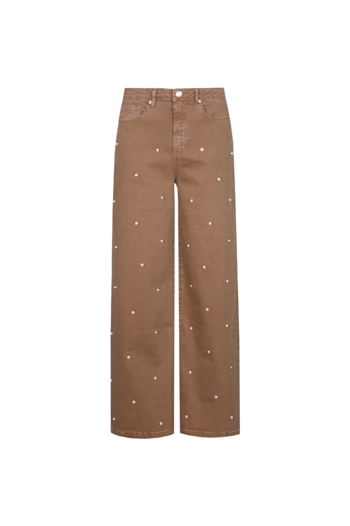 5-pocket broek van C&S The Label met wijde pijpen, pareldetails aan de voorzijde, knoop- en ritssluiting en een hoge taille. Materiaal: Katoen 98%| elastan 2%