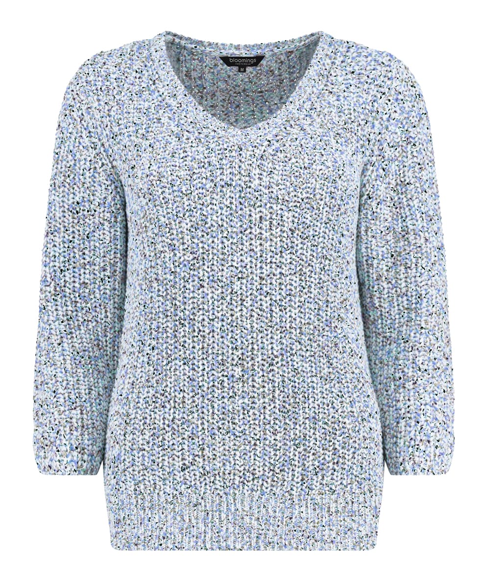 Ribgebreide trui van Bloomings met driekwart mouwen en V-hals. Materiaal: Katoen 55%| polyester 45%