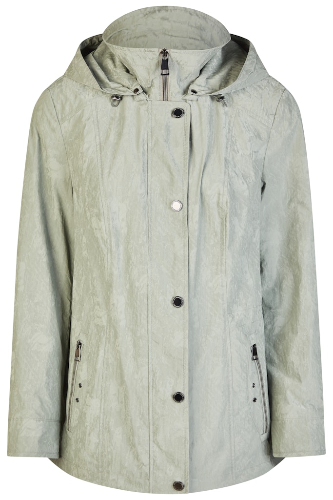 Jas van Lebek met een verborgen drukknoop- en ritssluiting, opstaande kraag, afneembare capuchon, twee ritszakken en een drawstring in de taille aan de achterzijde. Materiaal: Polyamide 100%