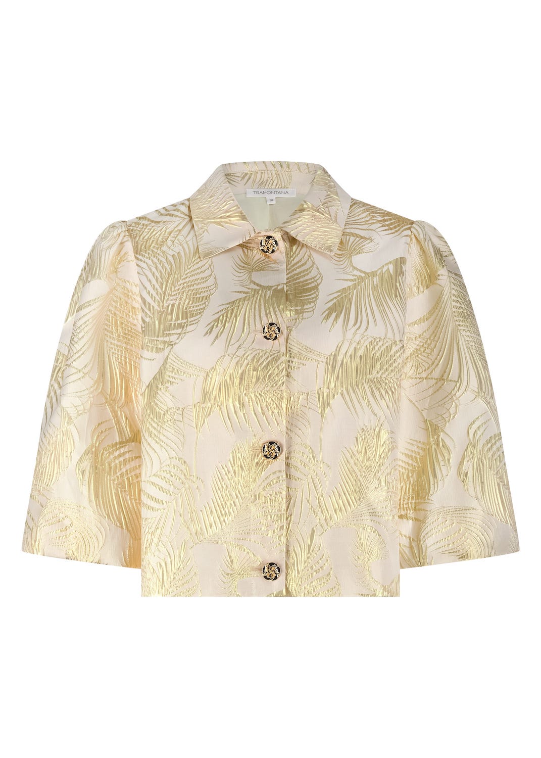 Jacquard jacket van Tramontana met een palmbomen print, driekwart pofmouwen, kraag en een knoopsluiting. Materiaal: Polyester 100%