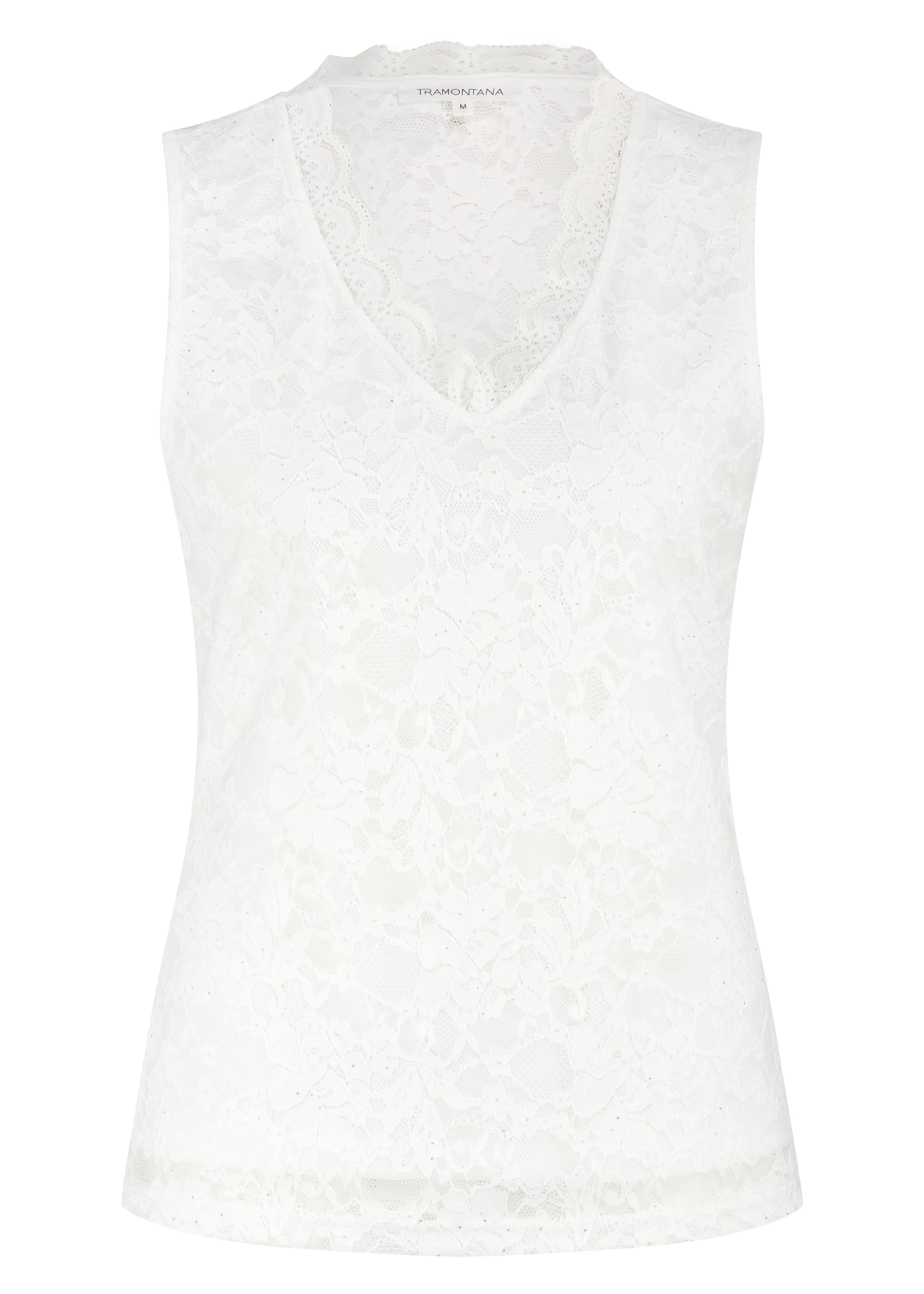 Mouwloze kanten top van Tramontana met een kanten V-hals. Materiaal: Viscose 85%| polyester 15% 2) Polyamide 90%| elastan 10%