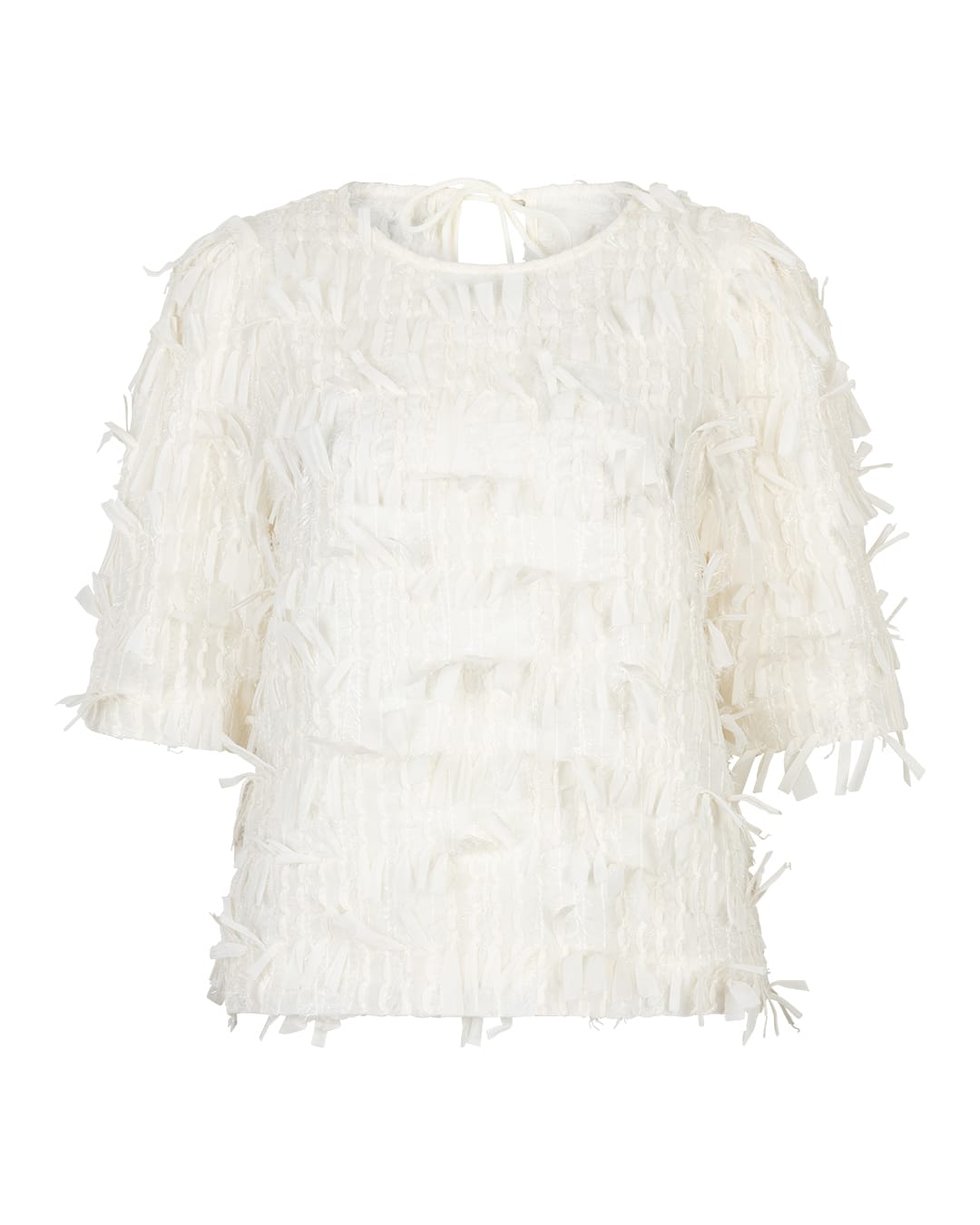 Top van Red Button voorzien van franjes met korte mouwen, ronde hals en een keyhole met striksluiting aan de achterzijde.