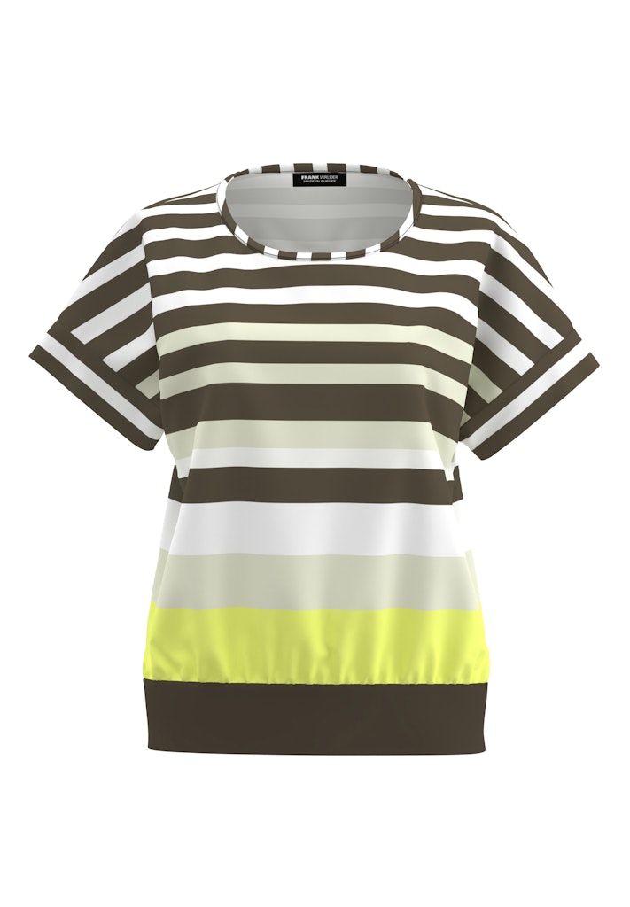 Gestreept shirt van Frank Walder met korte mouwen, ronde hals en een elastische boord aan de onderzijde.