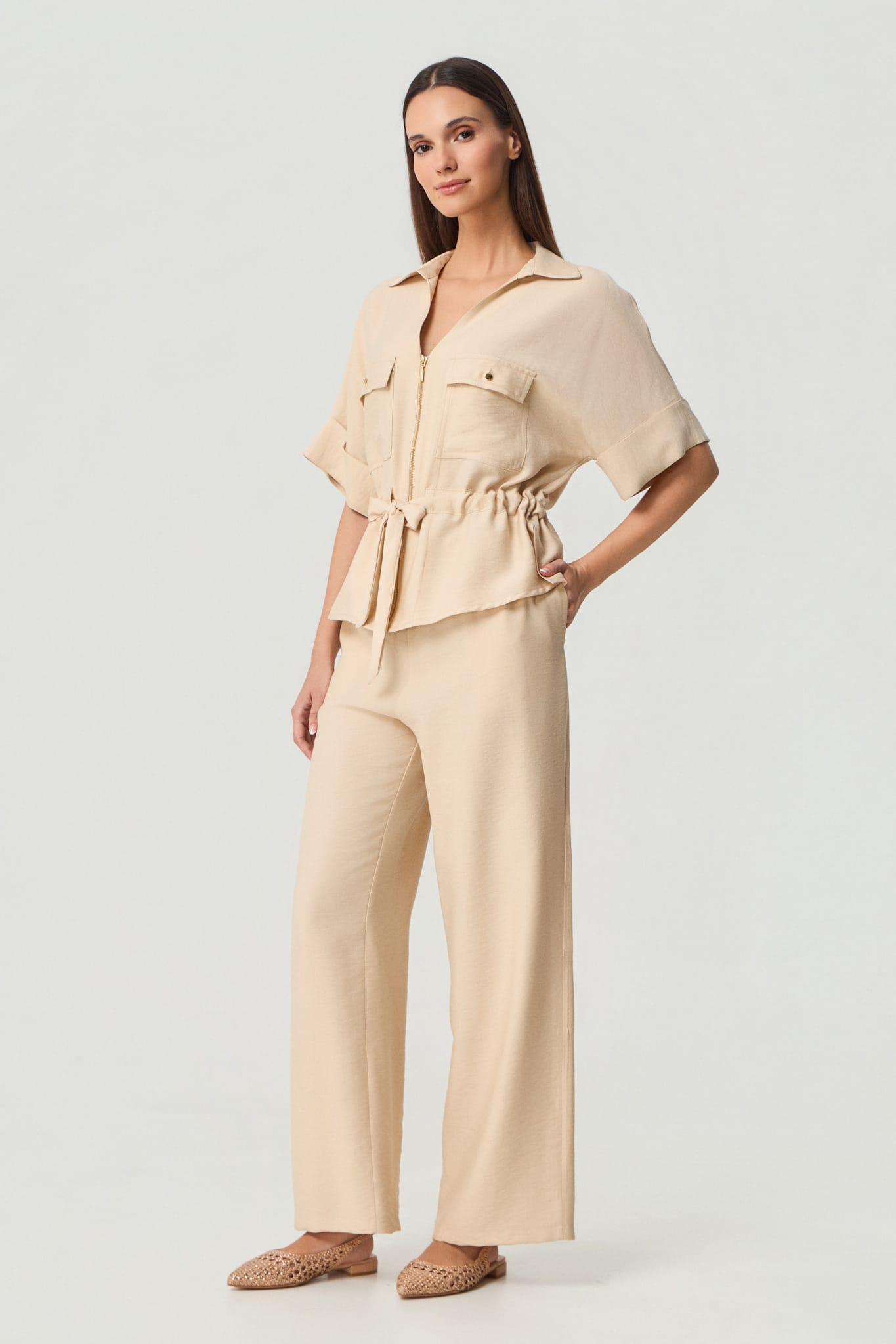Broek van Batida met wijde pijpen, steekzakken en een elastische tailleband. Materiaal: Rayon 80%| nylon 20%