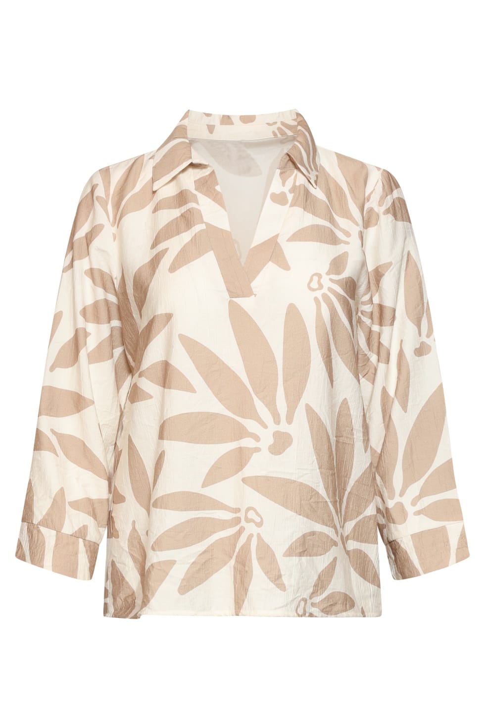 Blouse van Smashed Lemon in een all-over dessin met driekwart mouwen voorzien van brede omslag, kraag en V-hals. Materiaal: Rayon 82%| polyamide 18%