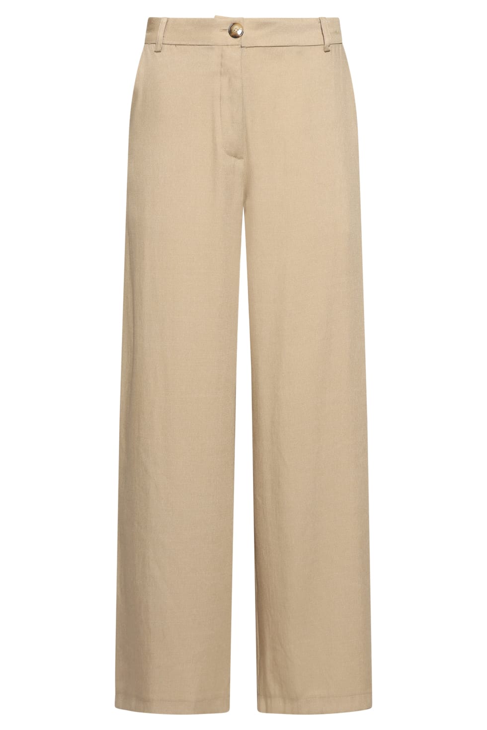 Broek van Smashed Lemon met wijde pijpen, hoge taille, knoop- en ritssluiting en steekzakken. Materiaal: Rayon 78,6%| polyester 14,4%| polyamide 7%