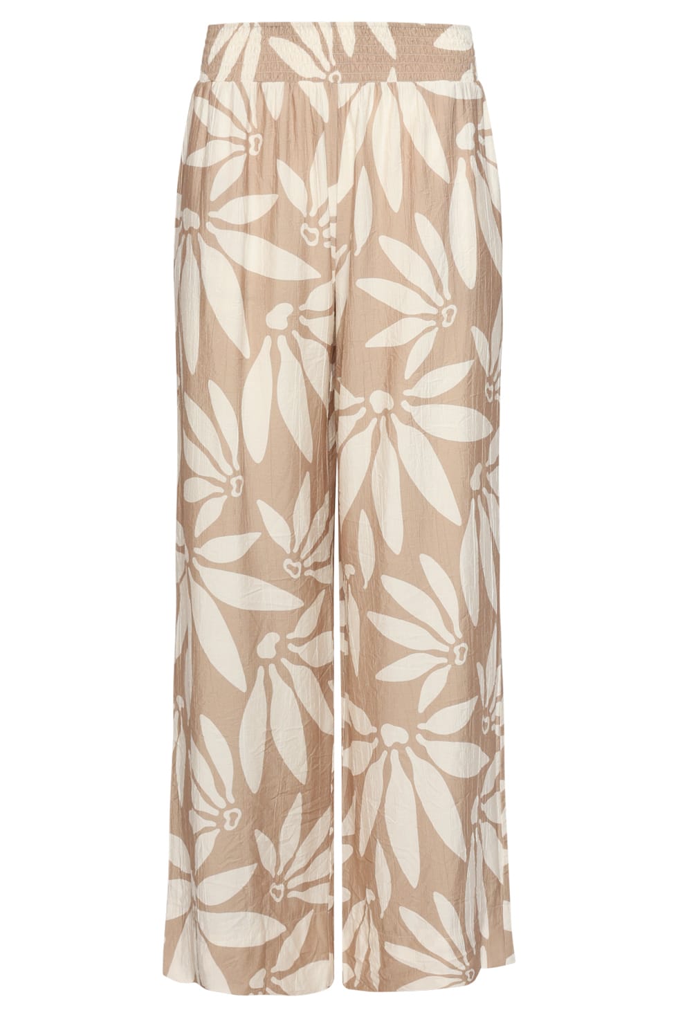 Broek van Smashed Lemon in een all-over dessin met wijde pijpen, elastische tailleband en steekzakken.