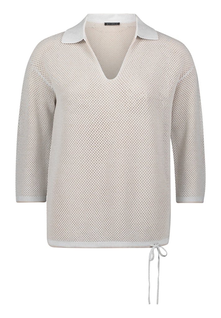 Trui van Betty Barclay in een structuur dessin met drikewart mouwen, kraag, V-hals en een trekkoord in de zoom.