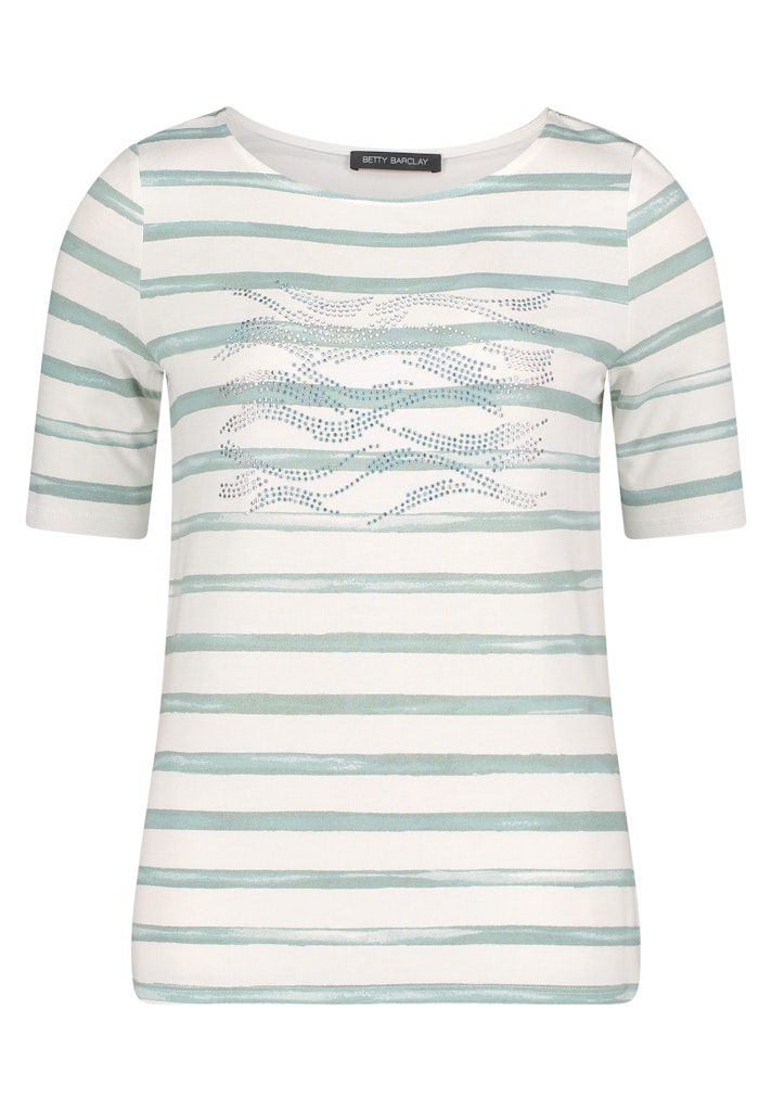 Gestreept T-shirt van Betty Barclay met korte mouwen, ronde hals en een print van strass-steentjes aan de voorzijde. Materiaal: Viscose 95%| elastan 5%
