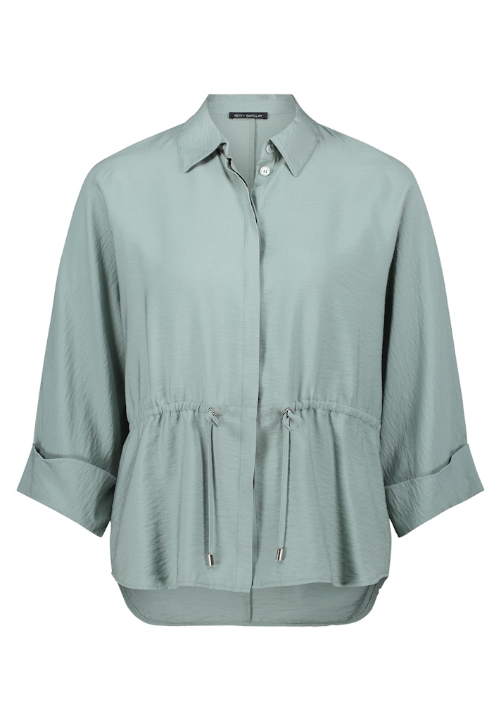 Blouse van Betty Barclay met driekwart aangeknipte mouwen voorzien van omslag, kraag, verborgen knoopsluiting, trekkoord in de taille en een afgeronde onderzijde. Materiaal: Viscose 89%| polyamide 11%
