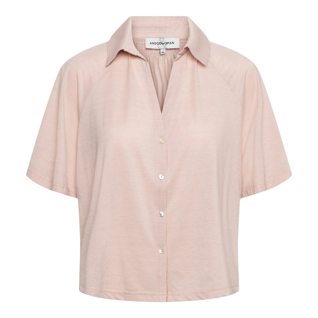 Glanzende blouse van &Co Woman met korte raglanmouwen, kraag, V-hals en een knoopsluiting. Materiaal: Polyester 44%| metaalgaren 27%| viscose 24%| elastan 5%