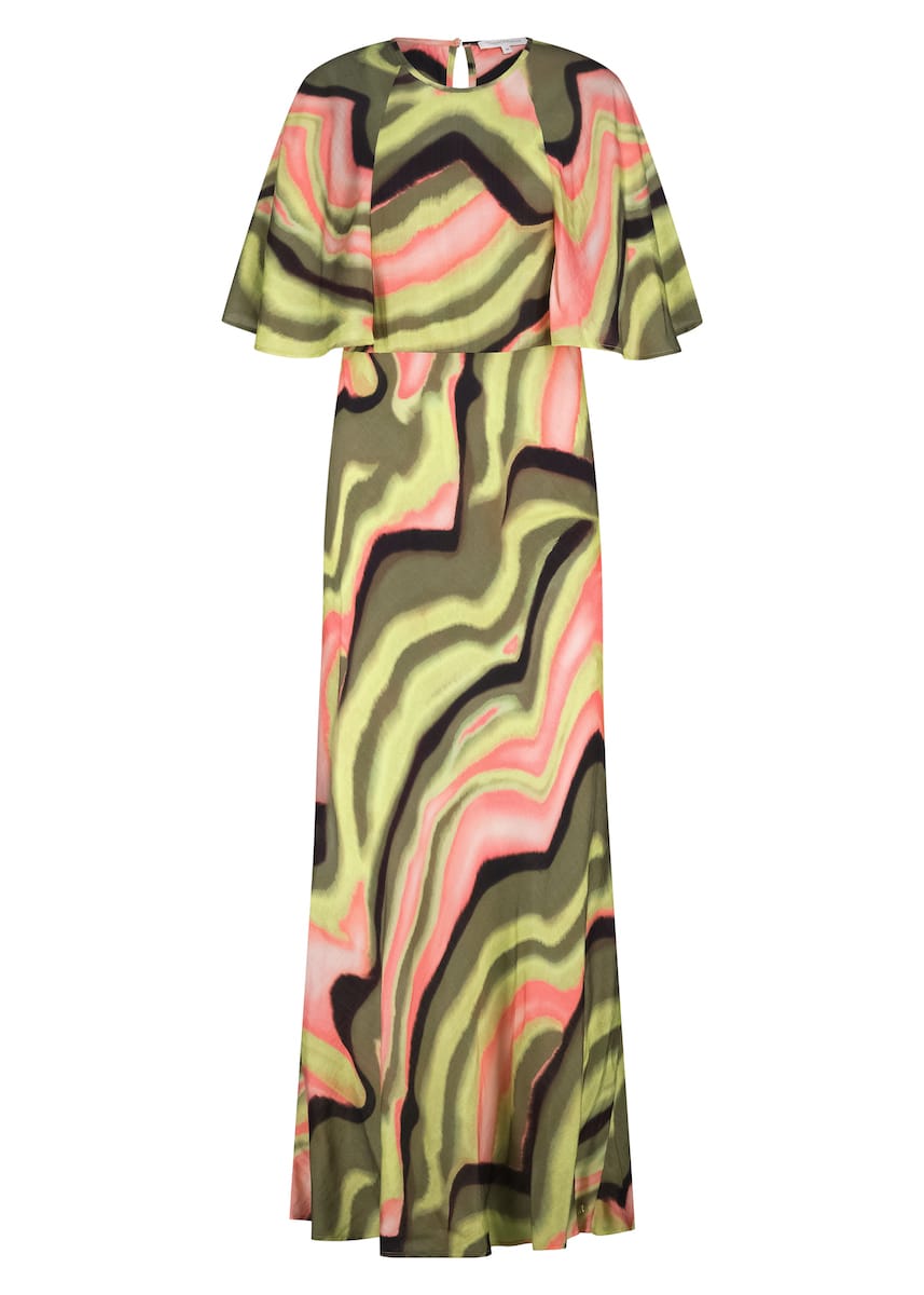 Lange jurk van Tramontana in een all-over dessin met halflange vleermuismouwen, ronde hals en een keyhole voorzien van knoopsluiting aan de achterzijde.