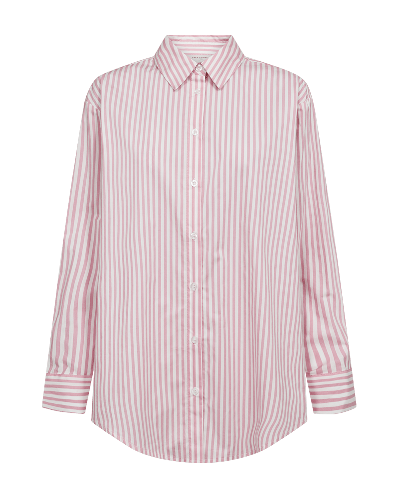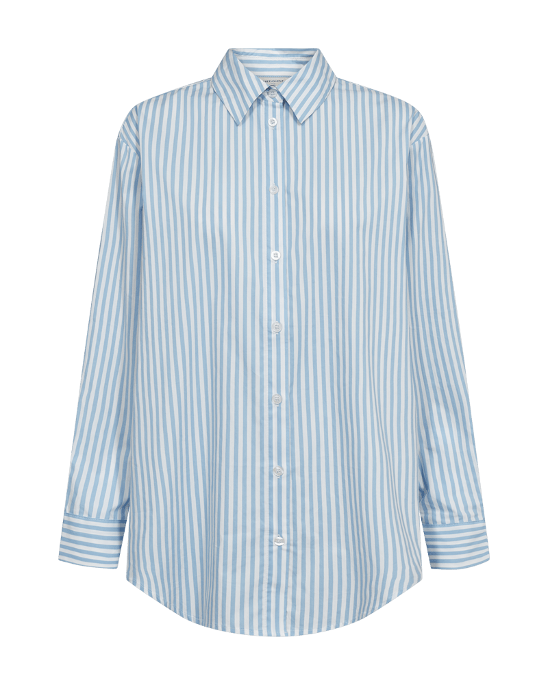 Gestreepte blouse van Freequent met lange mouwen, kraag, knoopsluiting en een afgeronde onderzijde. Materiaal: Katoen 100%