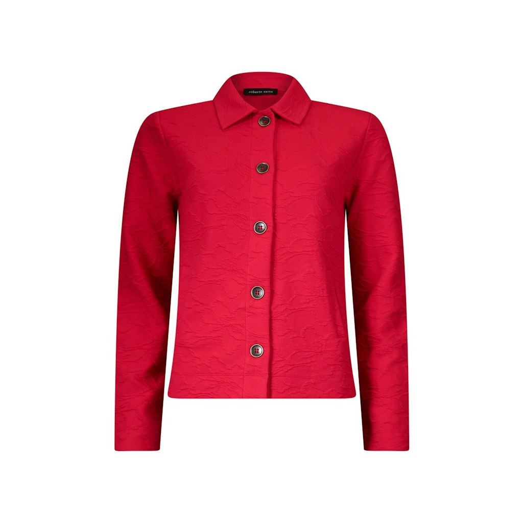 Boxy jacket van Roberto Sarto in een structuur dessin met lange mouwen, kraag en een knoopsluiting. Materiaal: Katoen 55%| polyester 425| elastan 3%