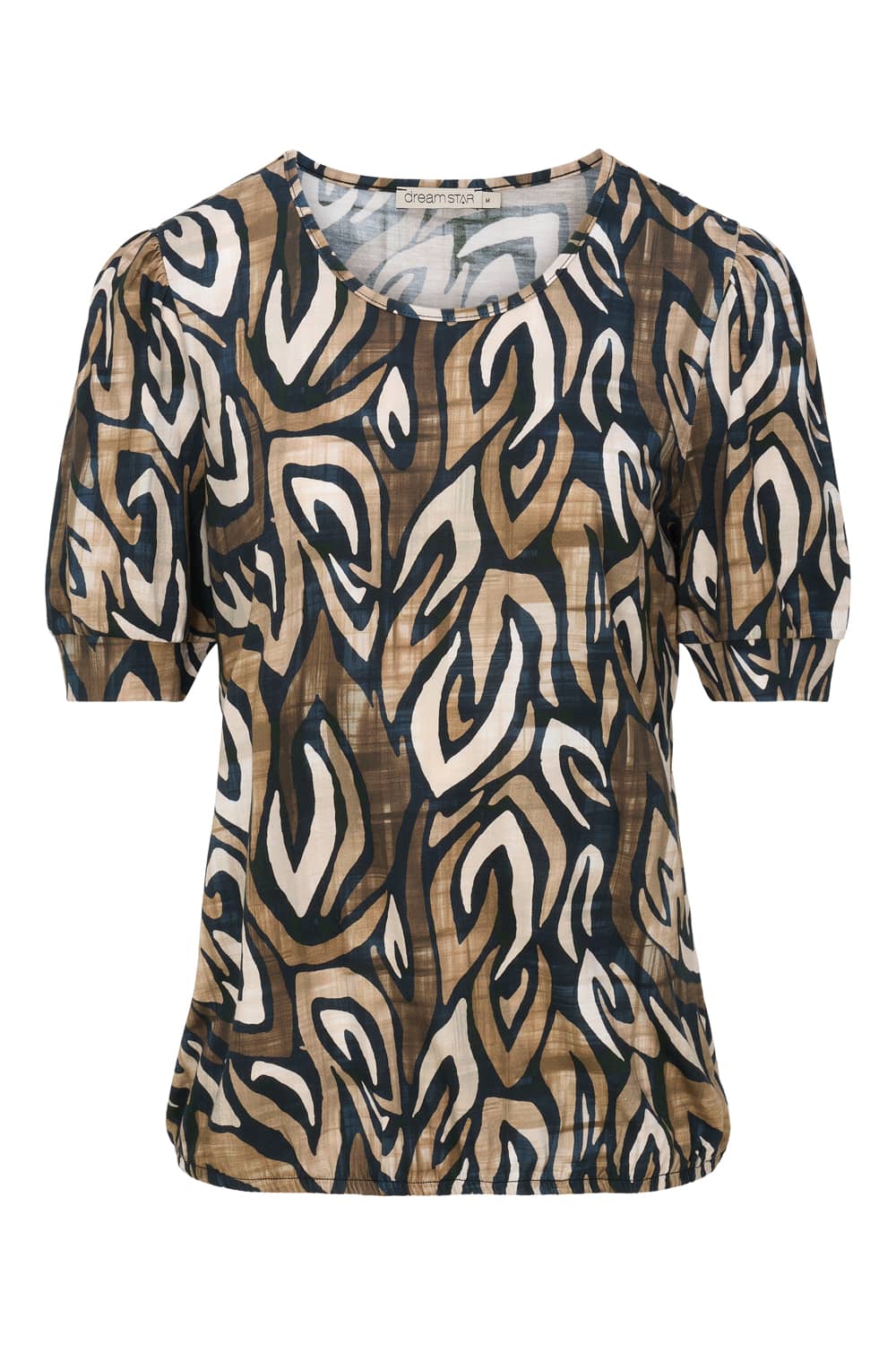 Shirt van Dreamstar in een all-over dessin met korte pofmouwen en een ronde hals. Materiaal: Viscose 95%| elastan 5%