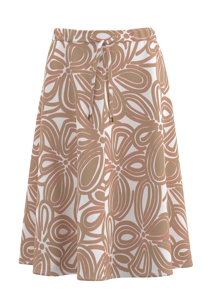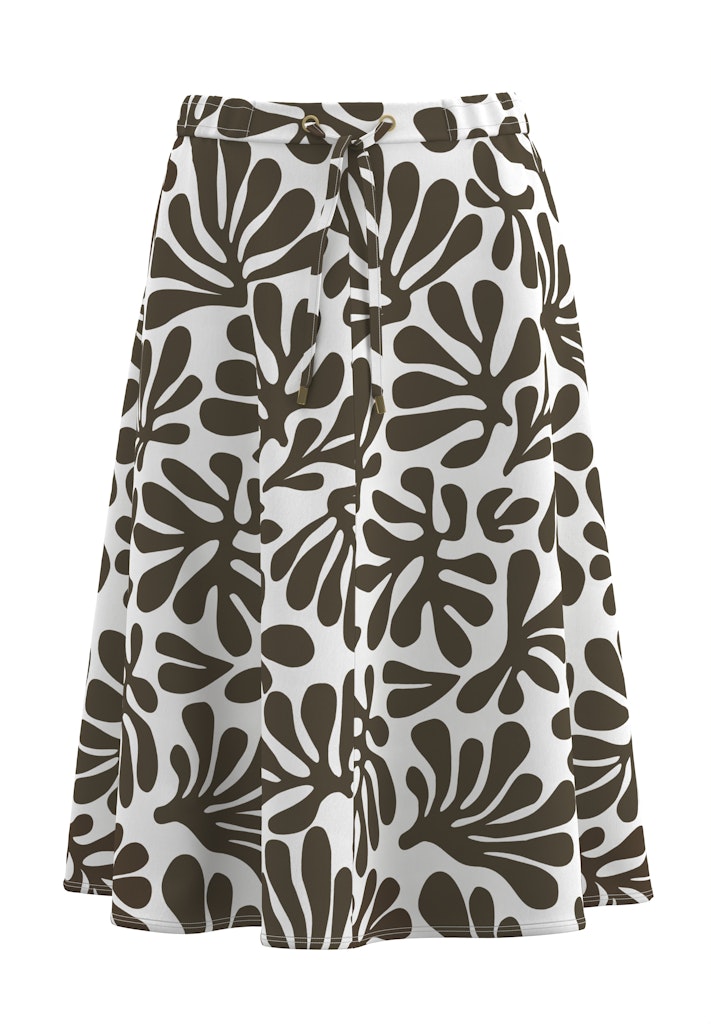 A-lijn rok van Frank Walder in een all-over dessin met een elastische tailleband voorzien van strikkoord. Materiaal: Viscose 96%| elastan 4%