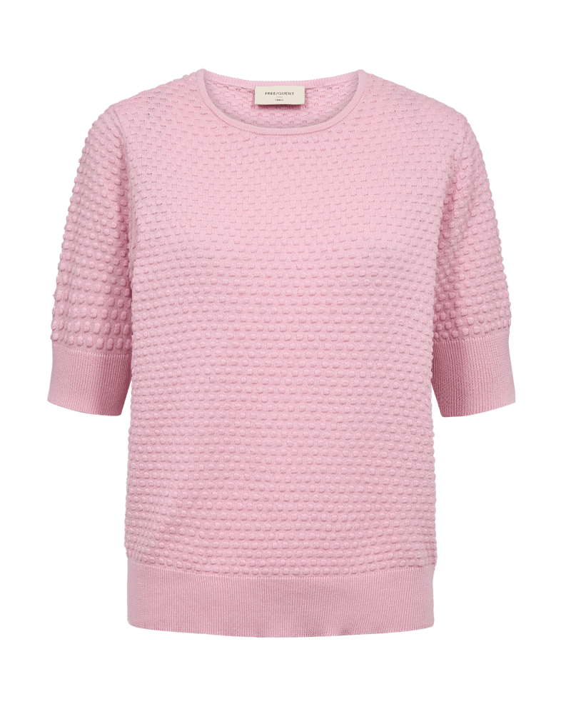 Trui van Freequent in een noppen structuur met korte mouwen, ronde hals en ribgebreide boorden. Materiaal: Katoen 100%