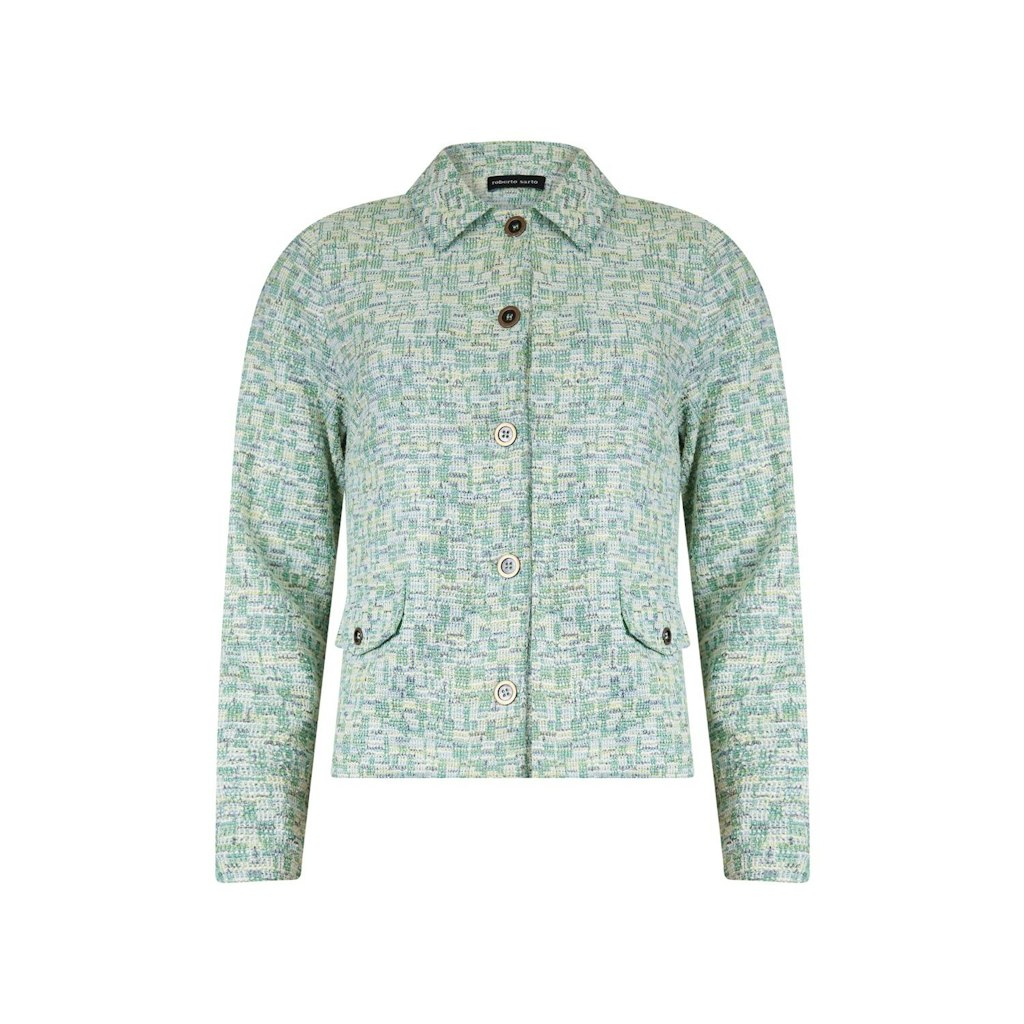 Jacket van Roberto Sarto in een ruit jacquard dessin met lange mouwen, kraag, knoopsluiting en klepzakken. Materiaal: Polyester 80%| katoen 18%| elastan 2%