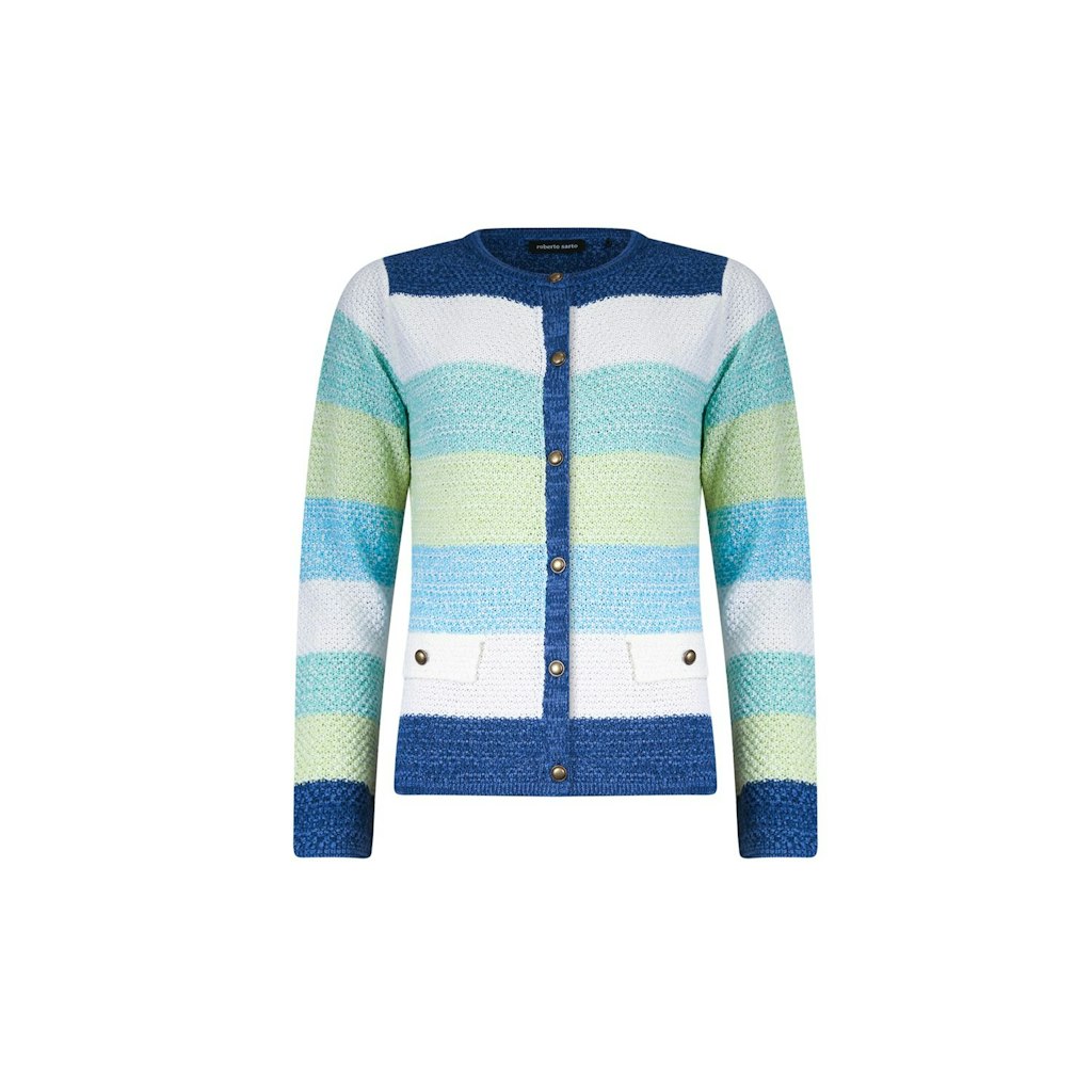Gestreept vest van Roberto Sarto in een structuur breisel met lange mouwen, ronde hals, knoopsluiting en imitatie klepzakken voorzien van knoop.