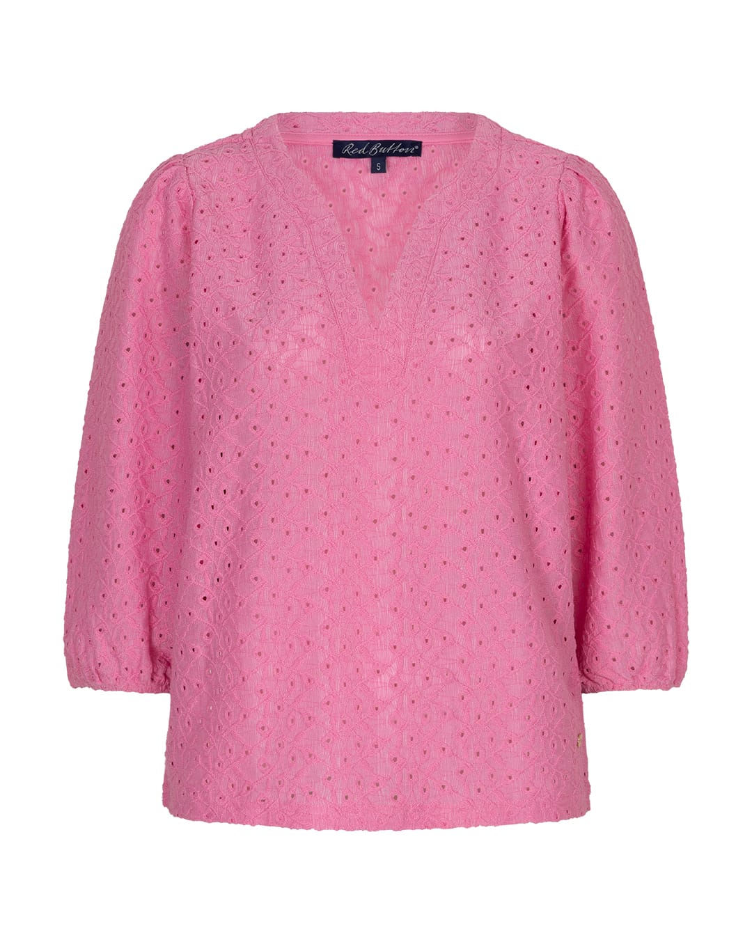 Broderie top van Red Button met driekwart ballonmouwen voorzien van elastische boorden en een V-hals.