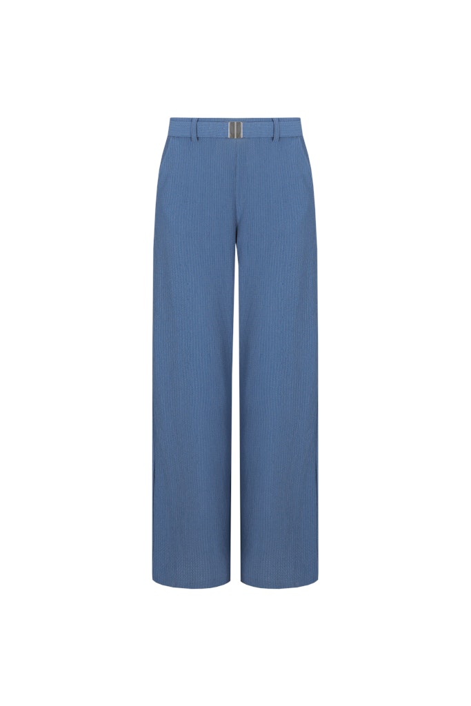 Broek van C&S The Label in een structuurstof met rechte pijpen, steekzakken en een elastische tailleband voorzien van ceintuur. Materiaal: Polyester 95%| elastan 5%