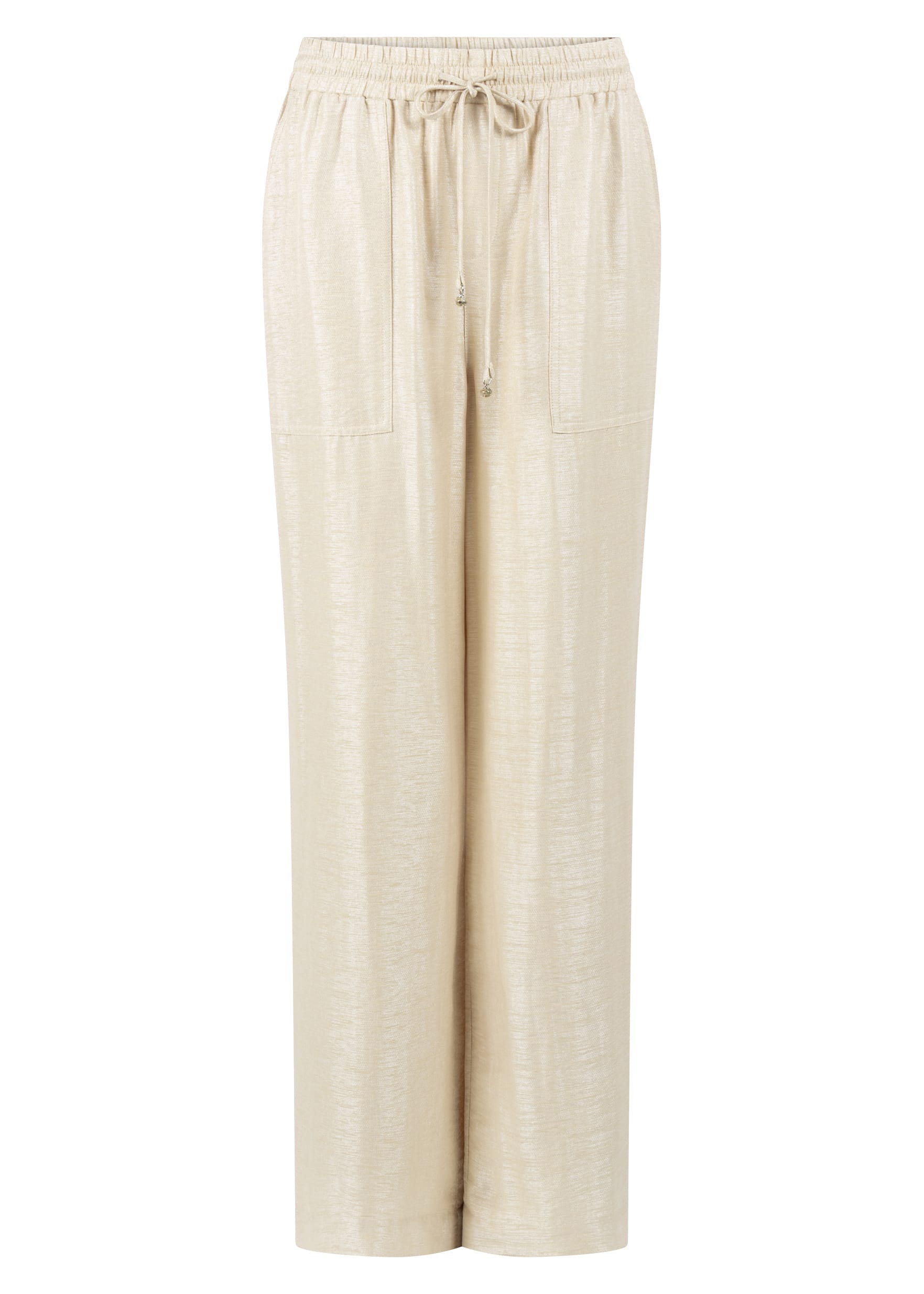 Glanzende broek van Tramontana met wijde pijpen, elastische tailleband voorzien van strikkoord, steekzakken en paspelzakken aan de achterzijde.