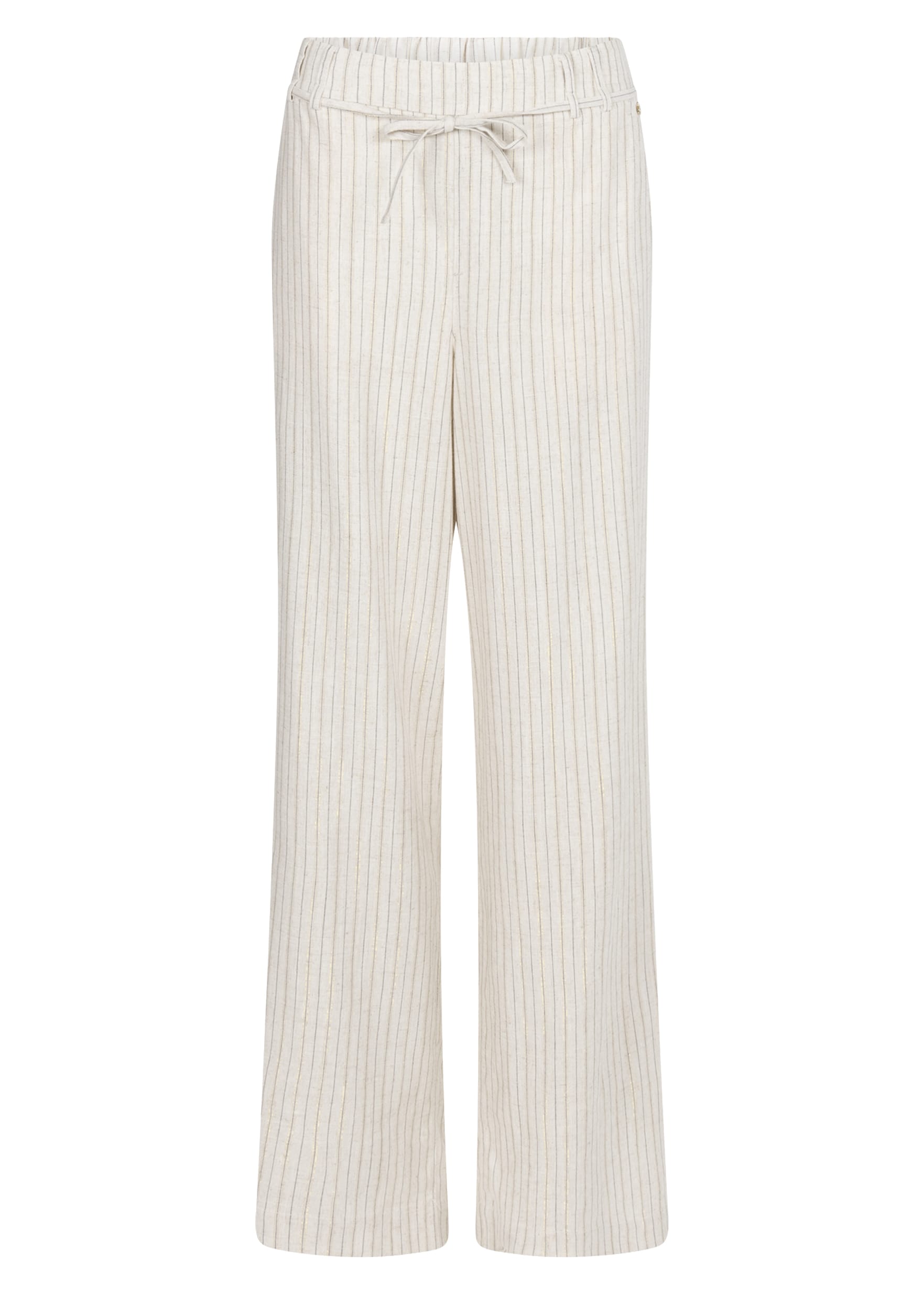 Lurex gestreepte broek van Tramontana met wijde pijpen, elastische tailleband, riemlussen voorzien van strikkoord, steekzakken en paspelzakken aan de achterzijde.
